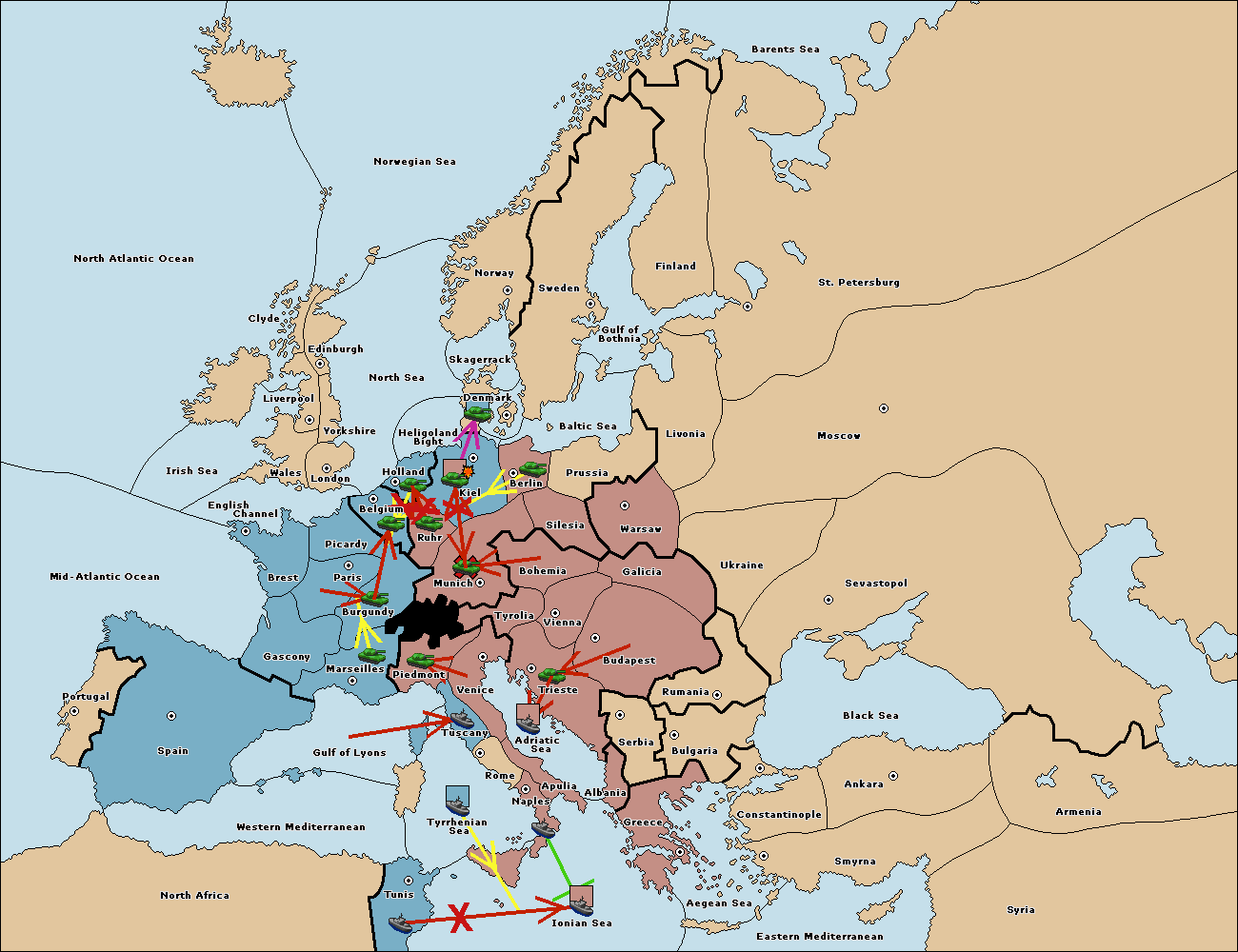 The fleet at Tyrrhenian Sea support hold to Tunis.