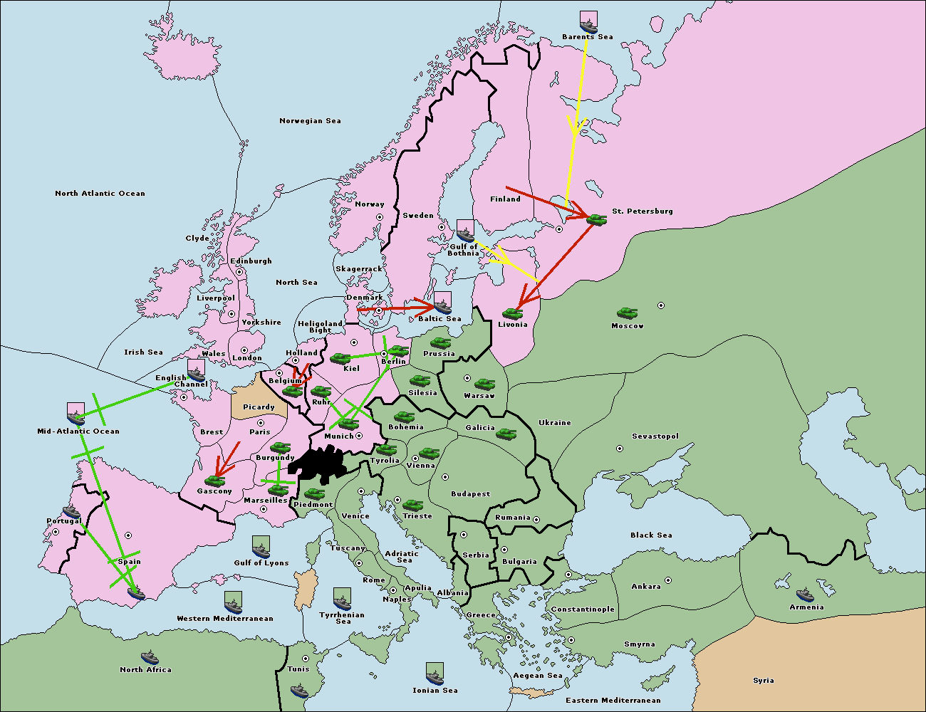 The fleet at Mid-Atlantic Ocean move to Western Mediterranean.