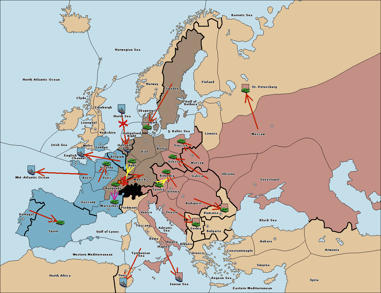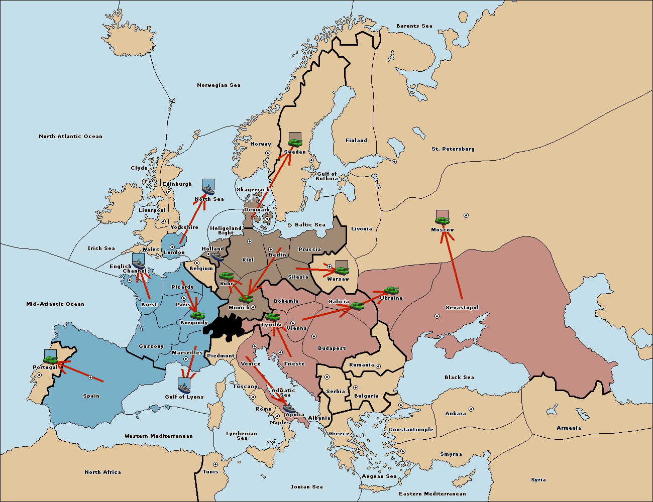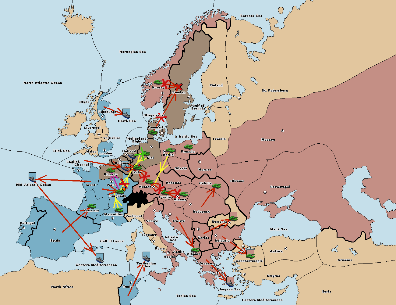 The fleet at Mid-Atlantic Ocean move to Western Mediterranean.