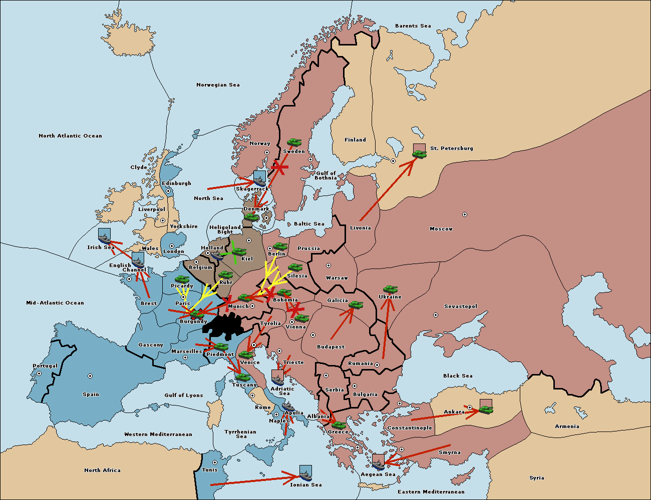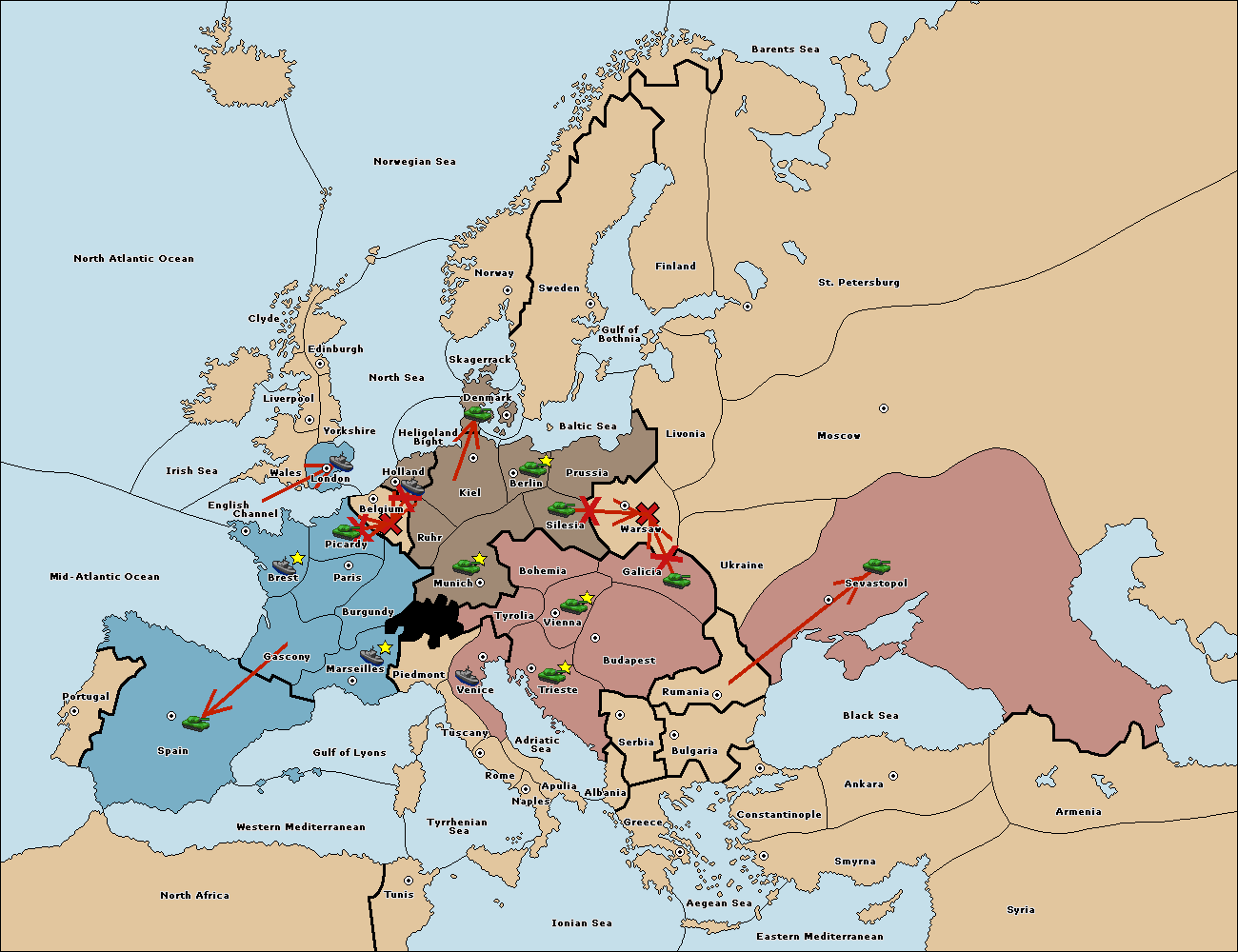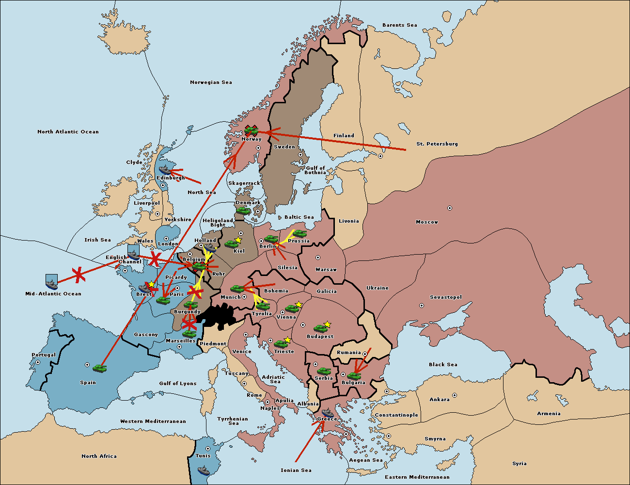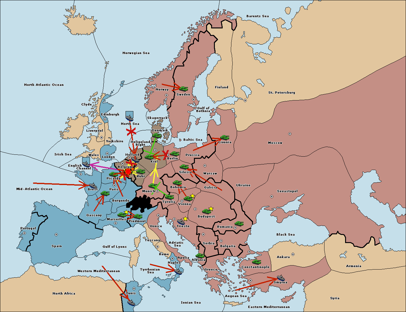 The fleet at Mid-Atlantic Ocean move to Western Mediterranean.
