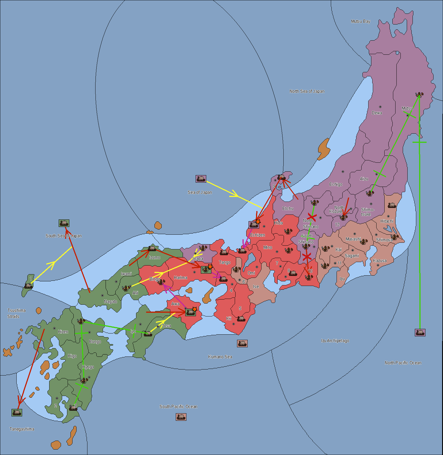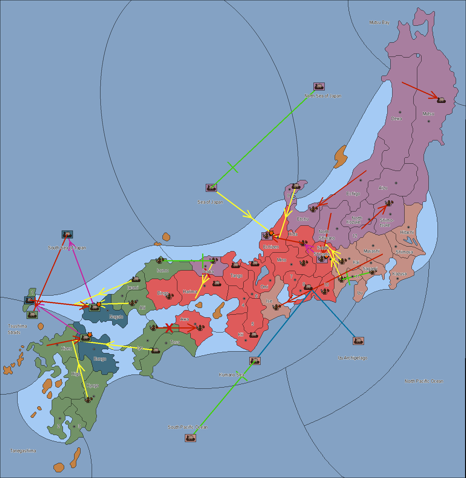 The army at Settsu (4) support move to Yamashiro (6) from Yamato (5).