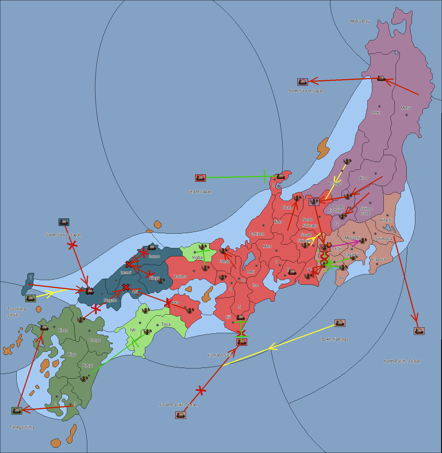 The fleet at South Pacific Ocean support move to Kumano Sea from Izu Archipelago.