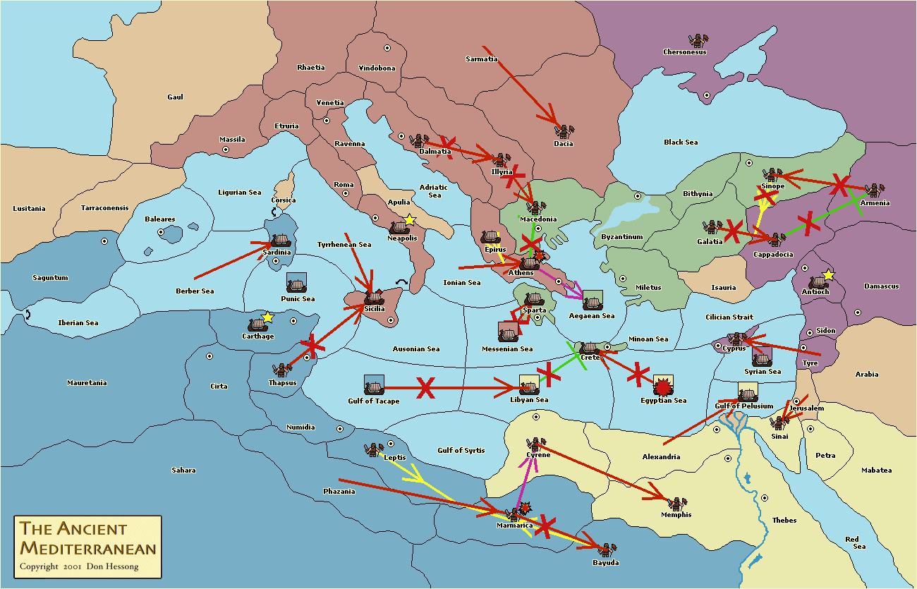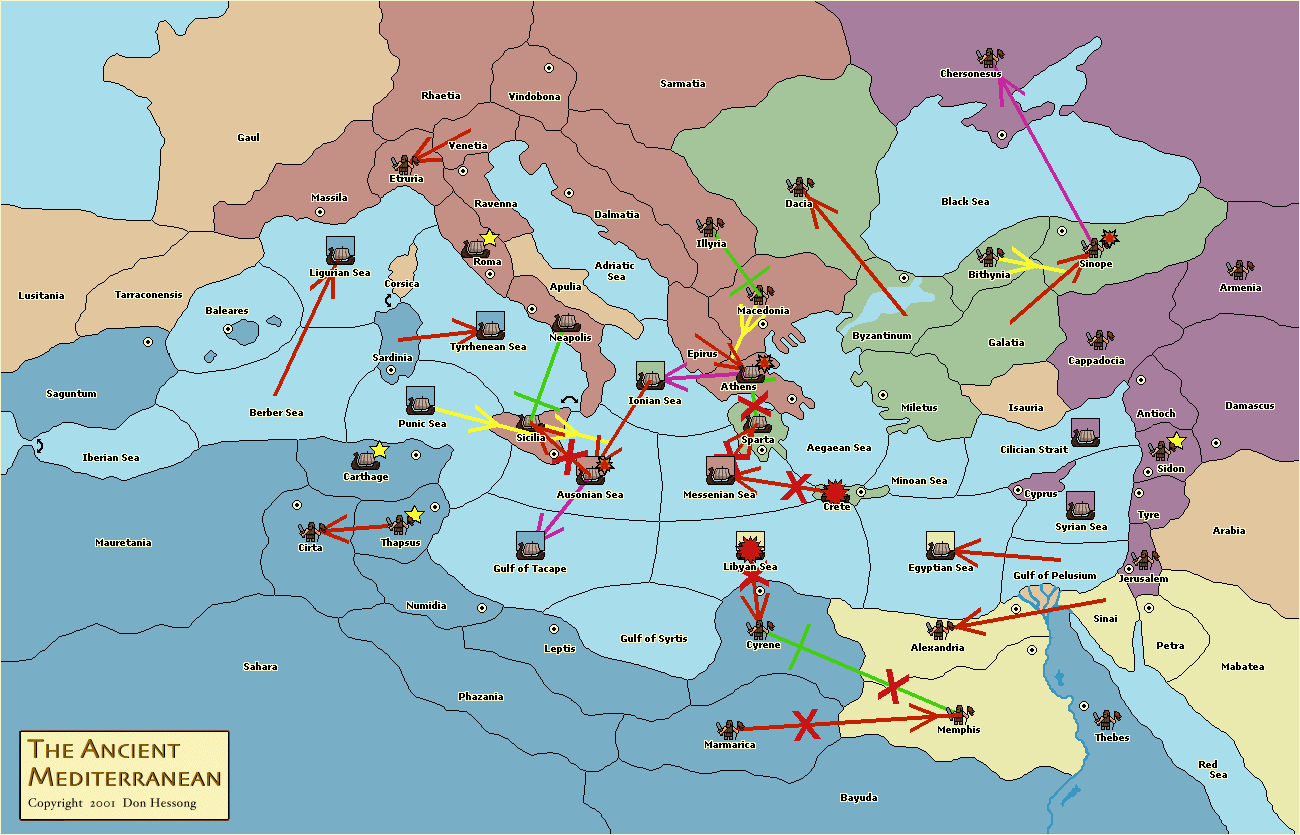 The fleet at Messenian Sea support move to Crete from Minoan Sea.