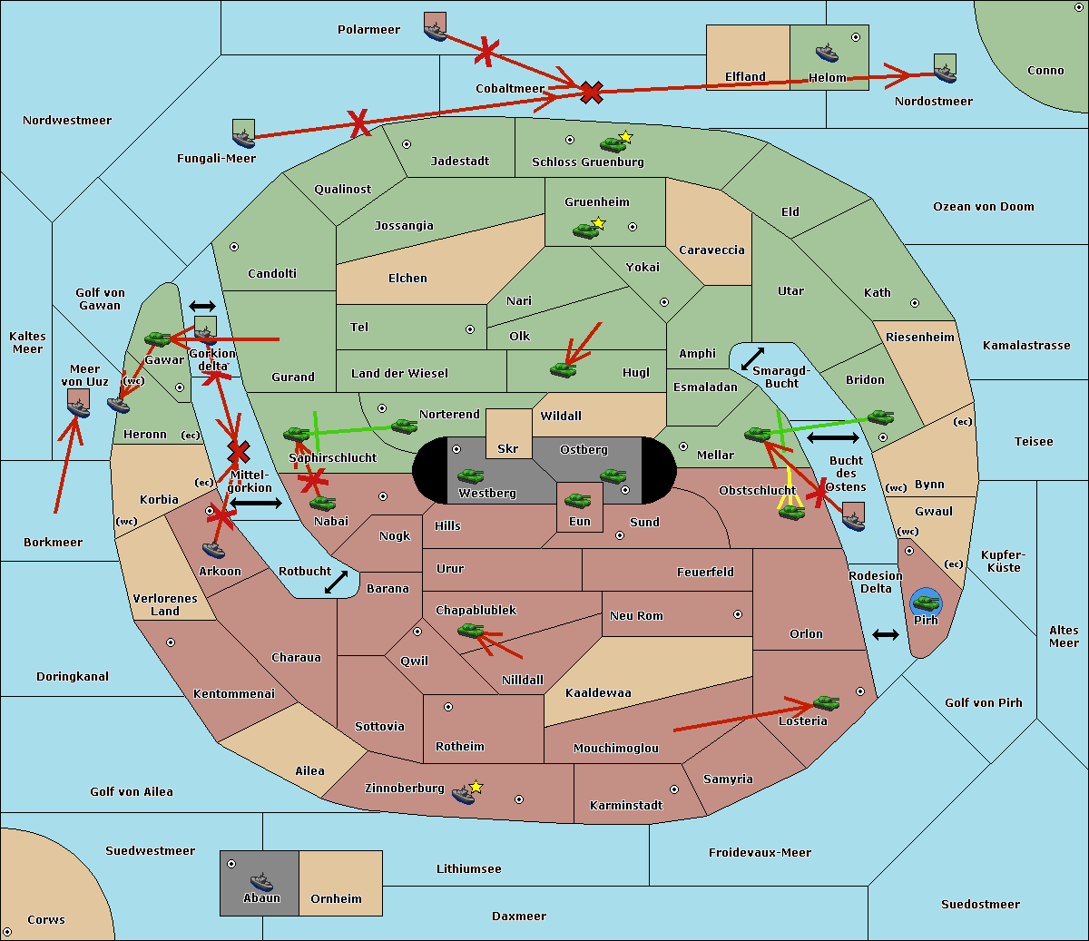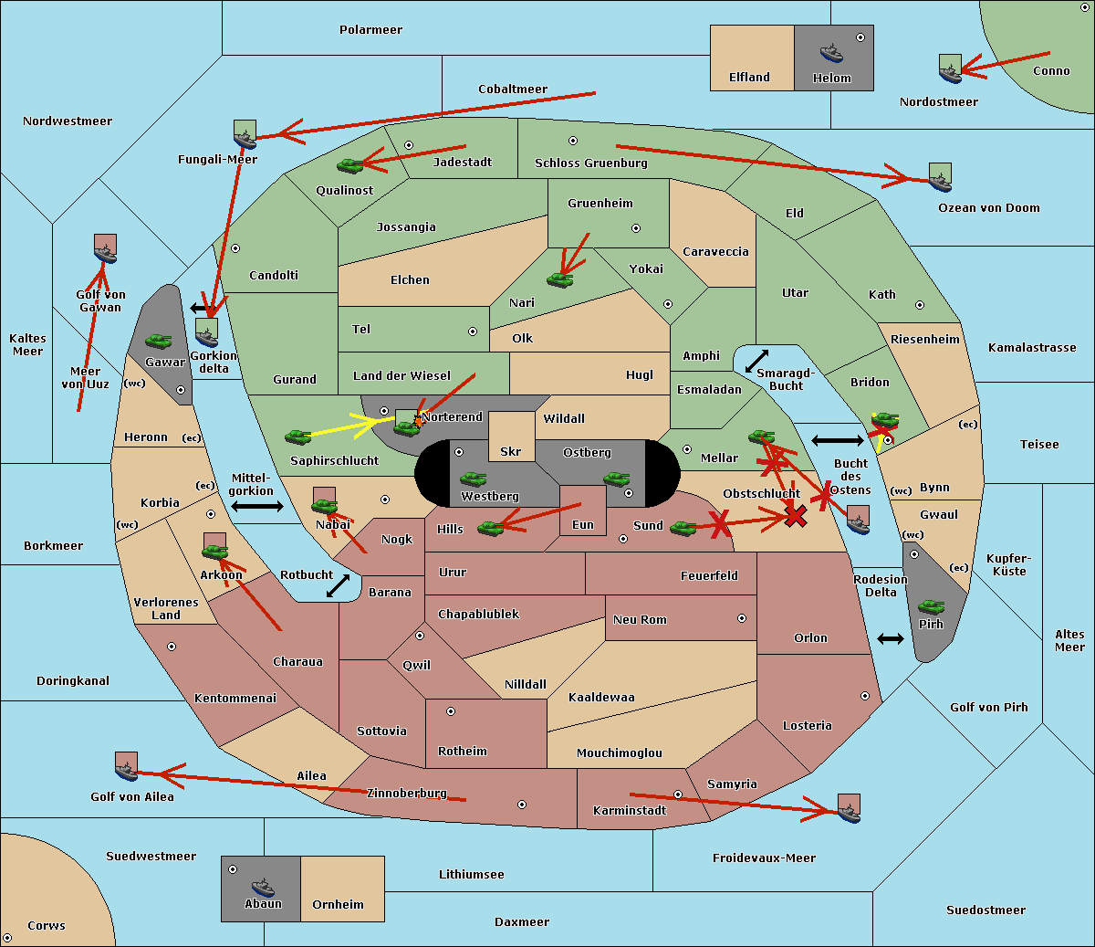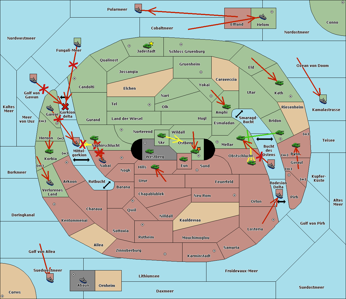 The fleet at Bucht des Ostens support move to Obstschlucht from Sund.
