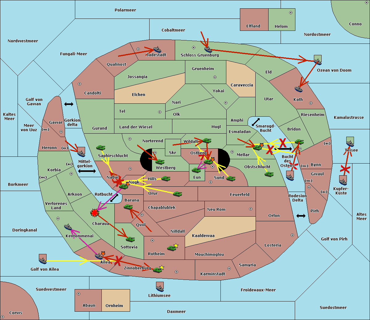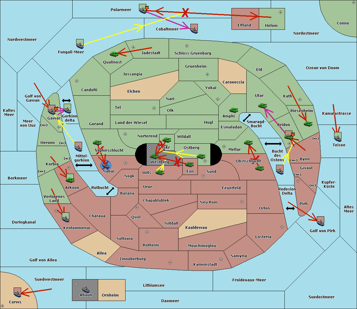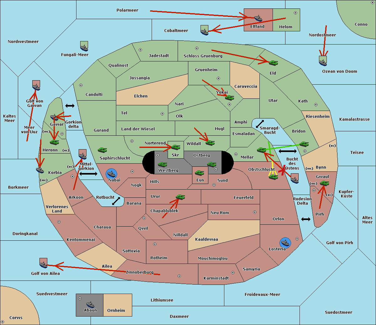 The fleet at Bucht des Ostens support move to Obstschlucht from Sund.