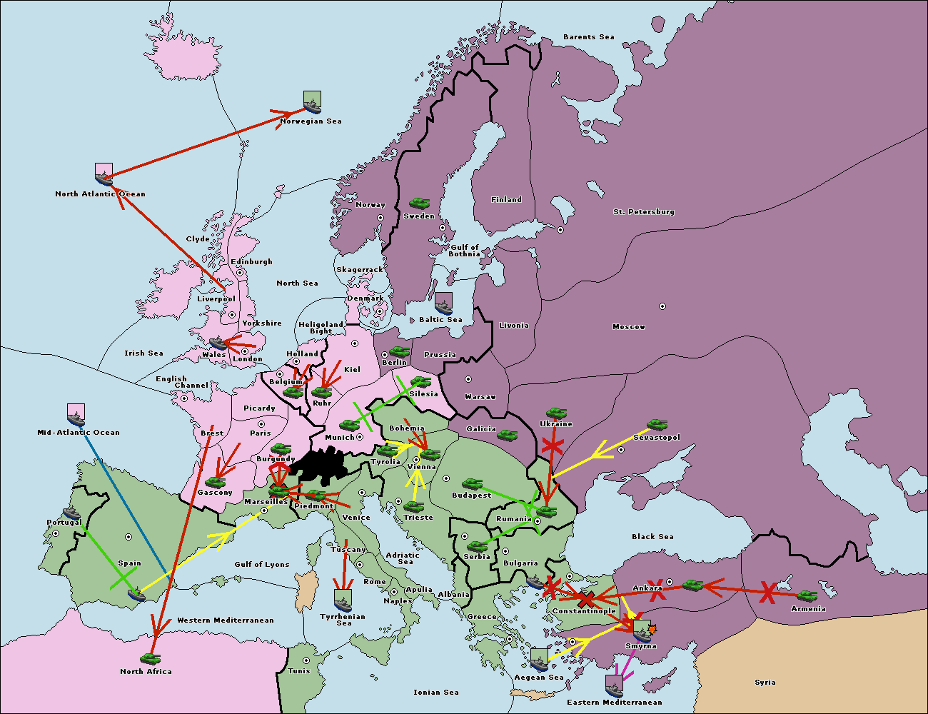 The fleet at Bulgaria (South Coast) support hold to Constantinople.