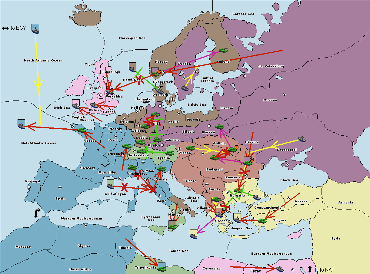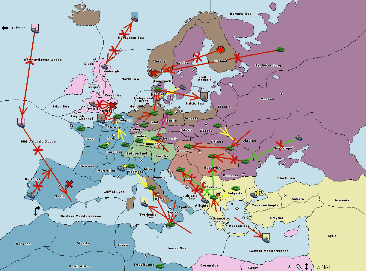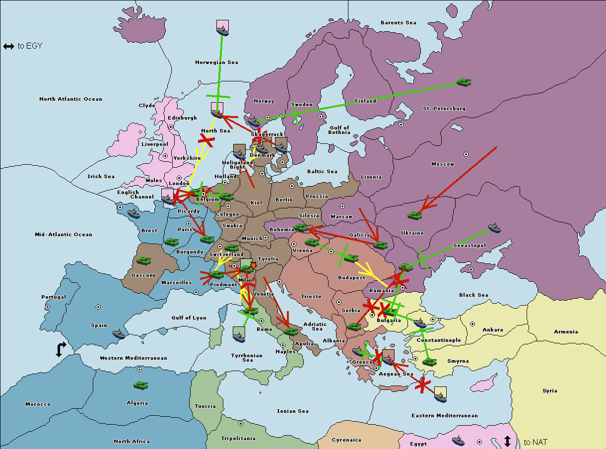 The fleet at Rumania support move to Bulgaria from Constantinople.