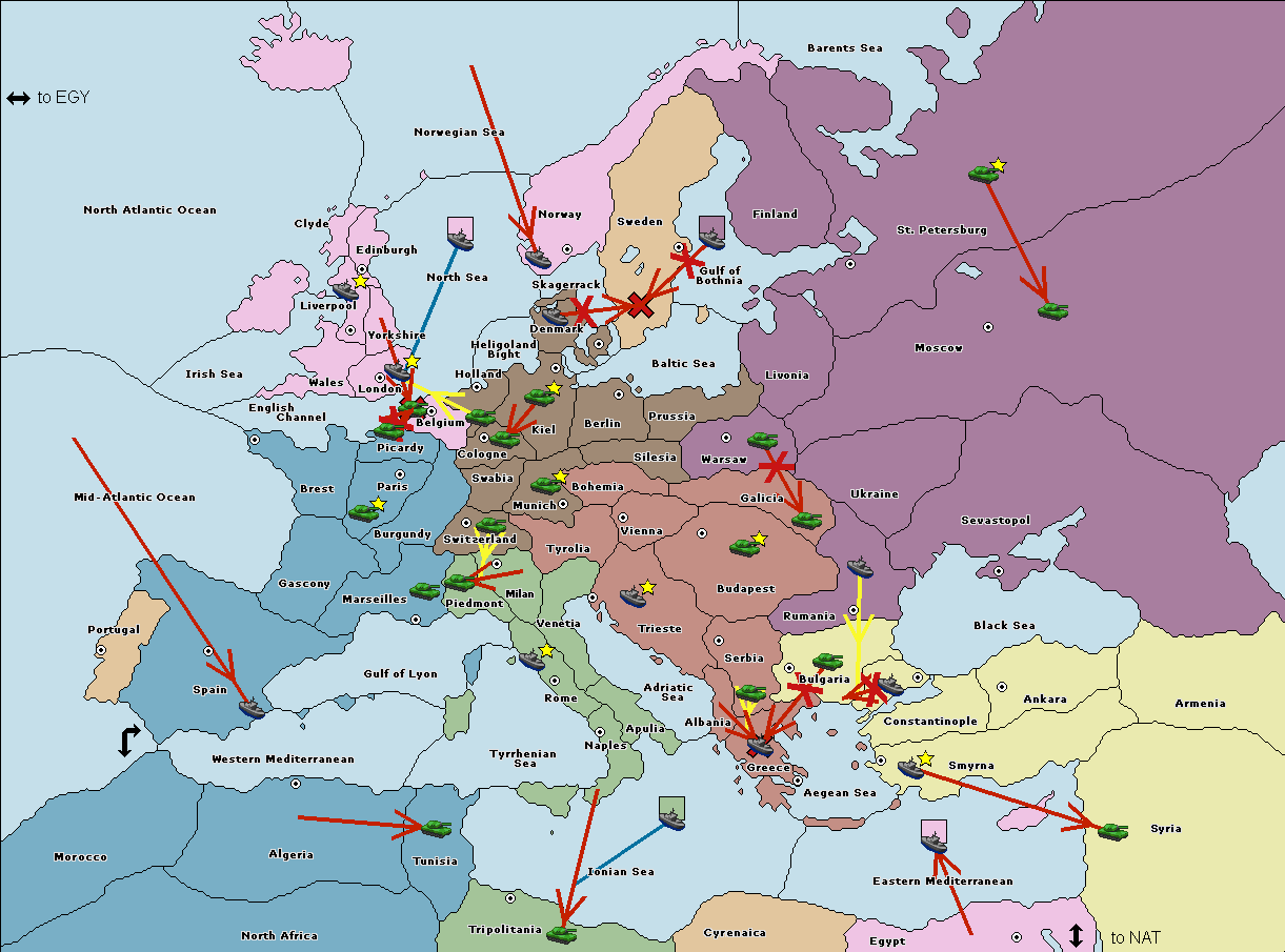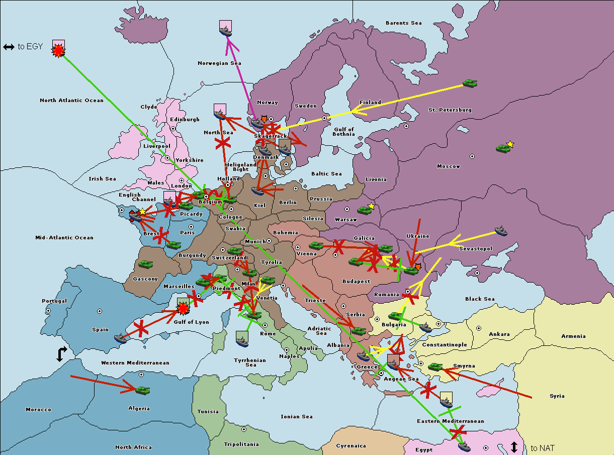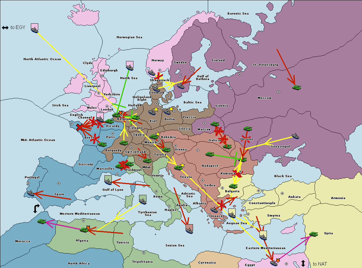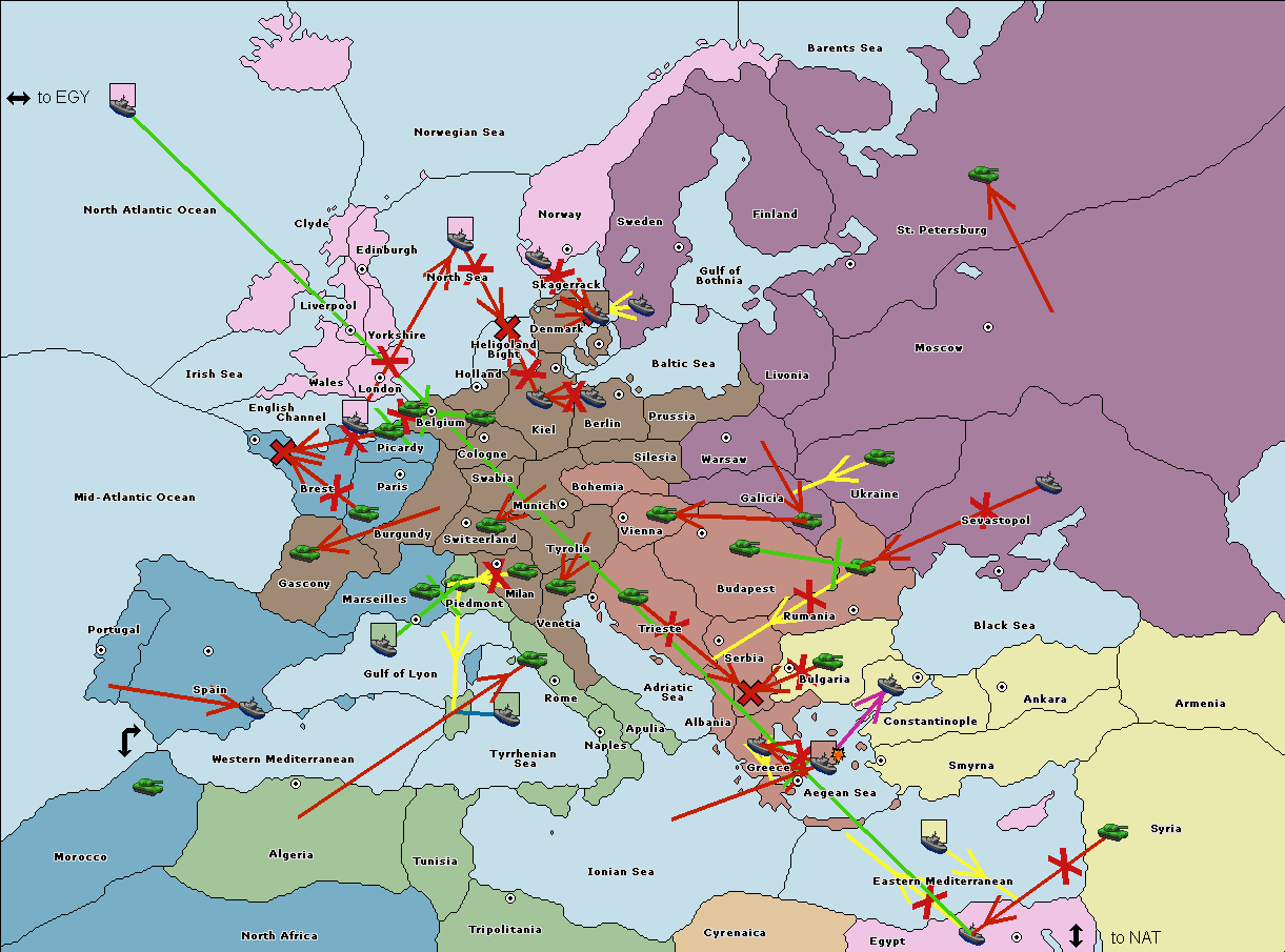 The fleet at Rumania support move to Bulgaria from Constantinople.