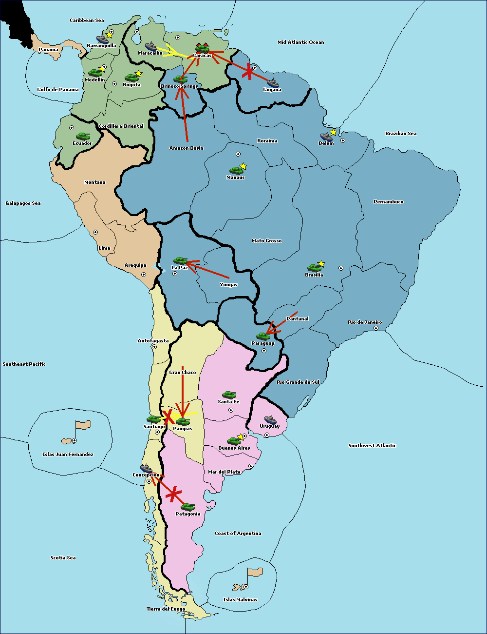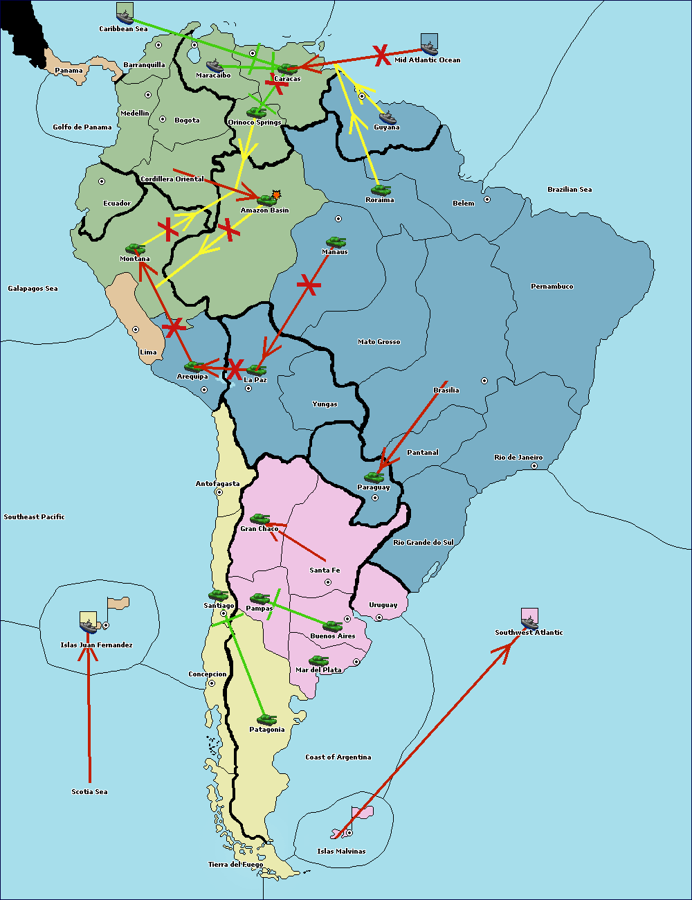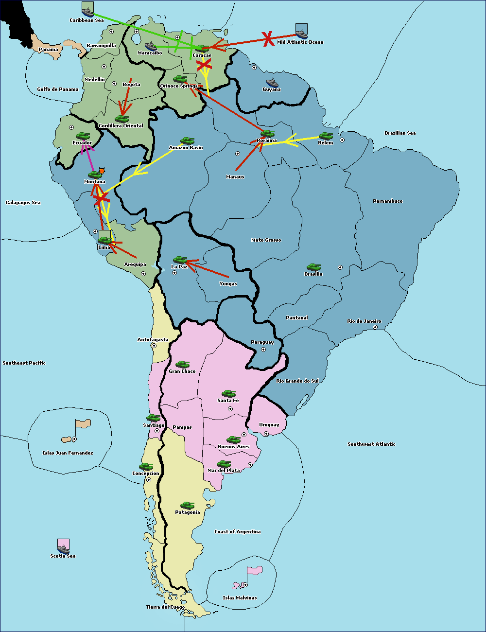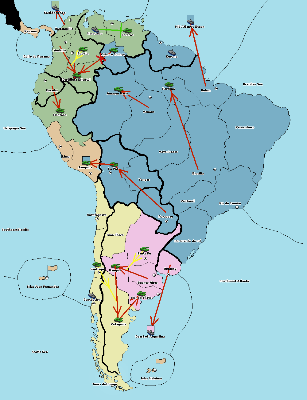 The army at Orinoco Springs move to Amazon Basin.