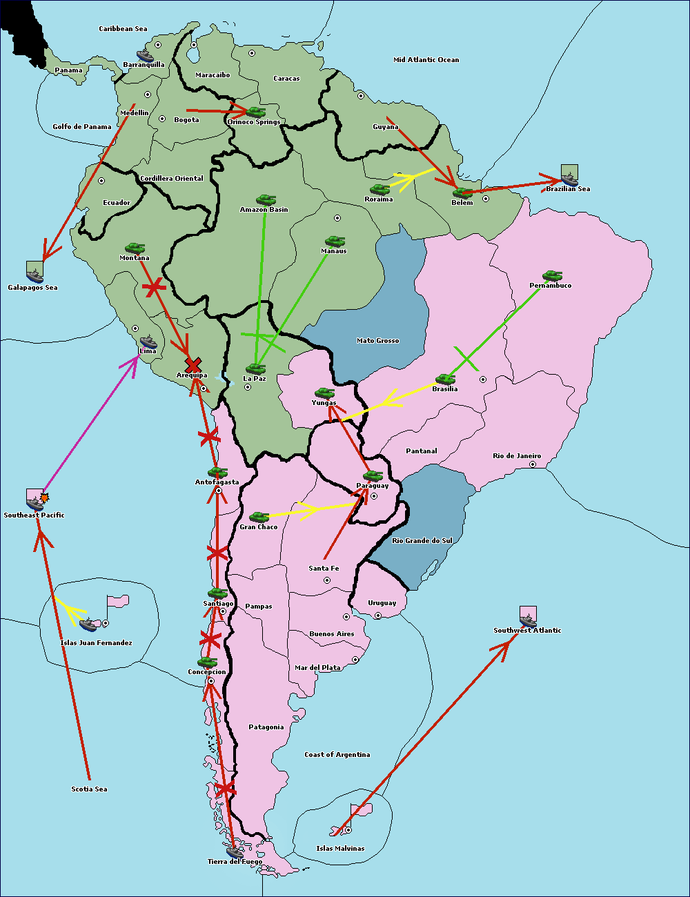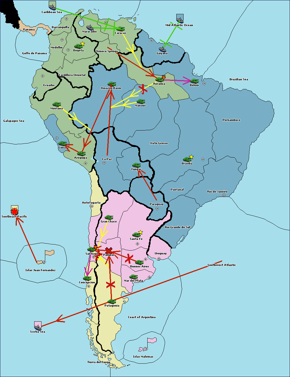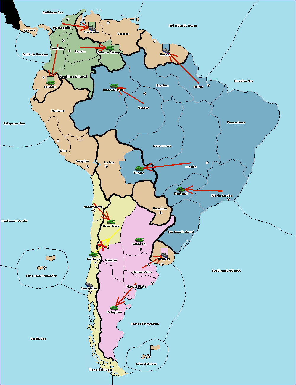 The army at Orinoco Springs move to Amazon Basin.