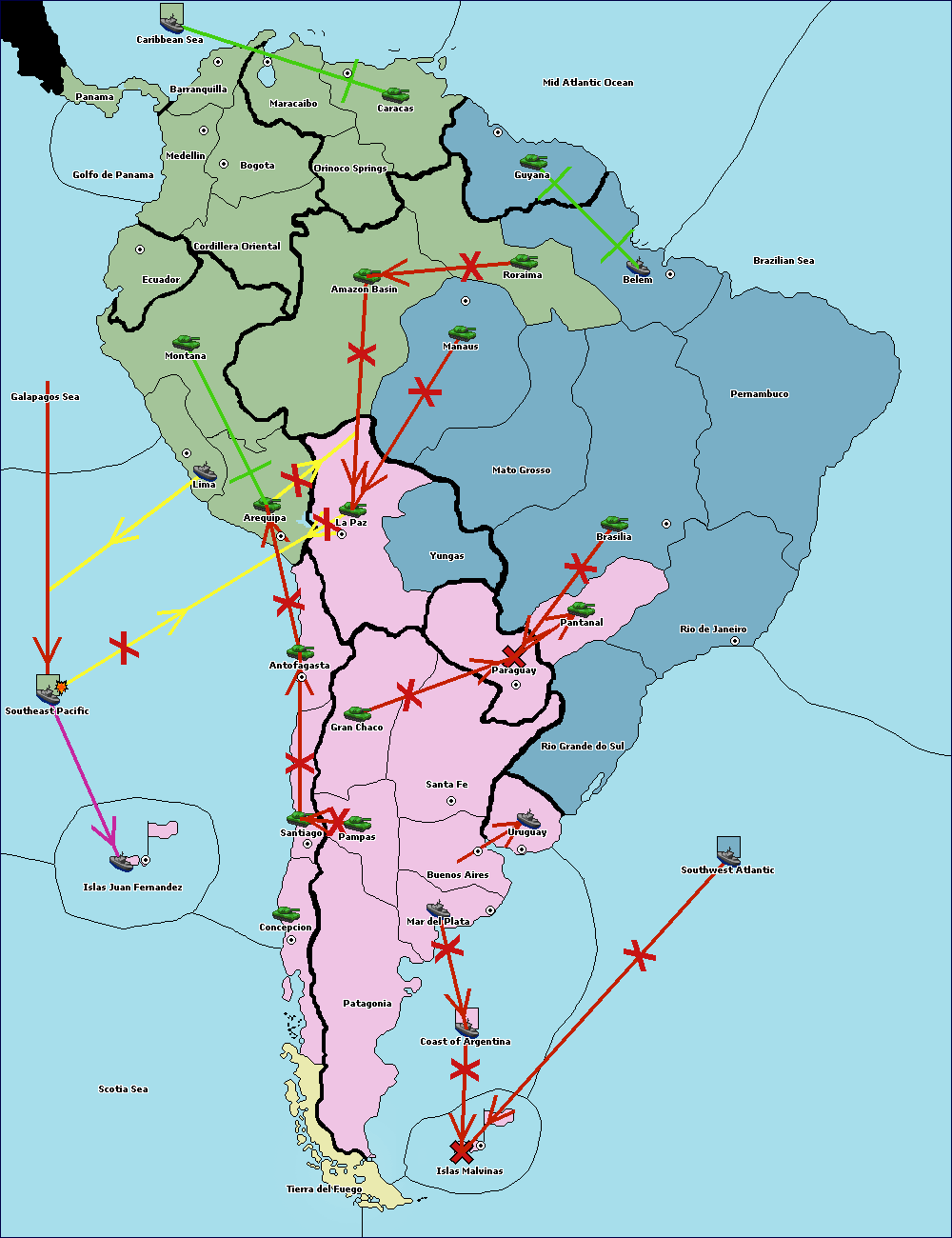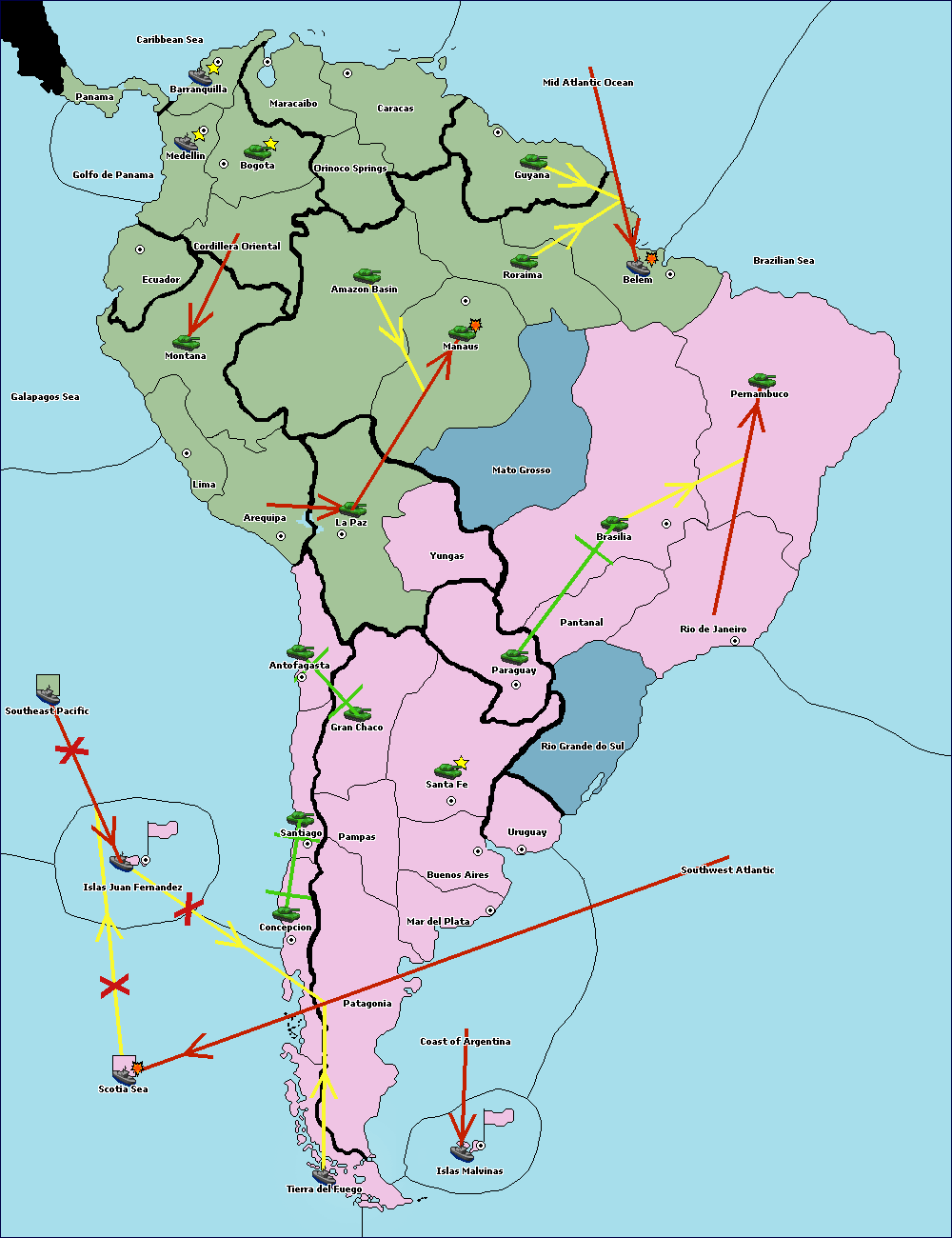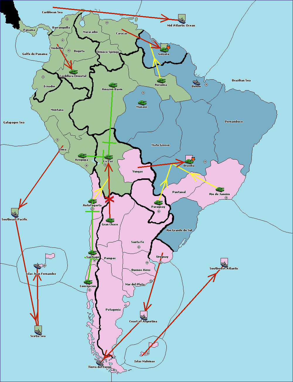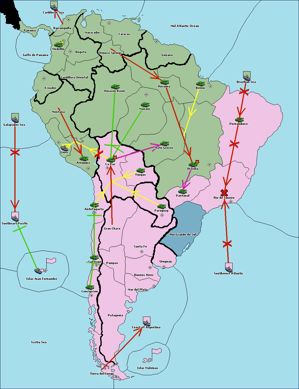 The army at Orinoco Springs move to Amazon Basin.