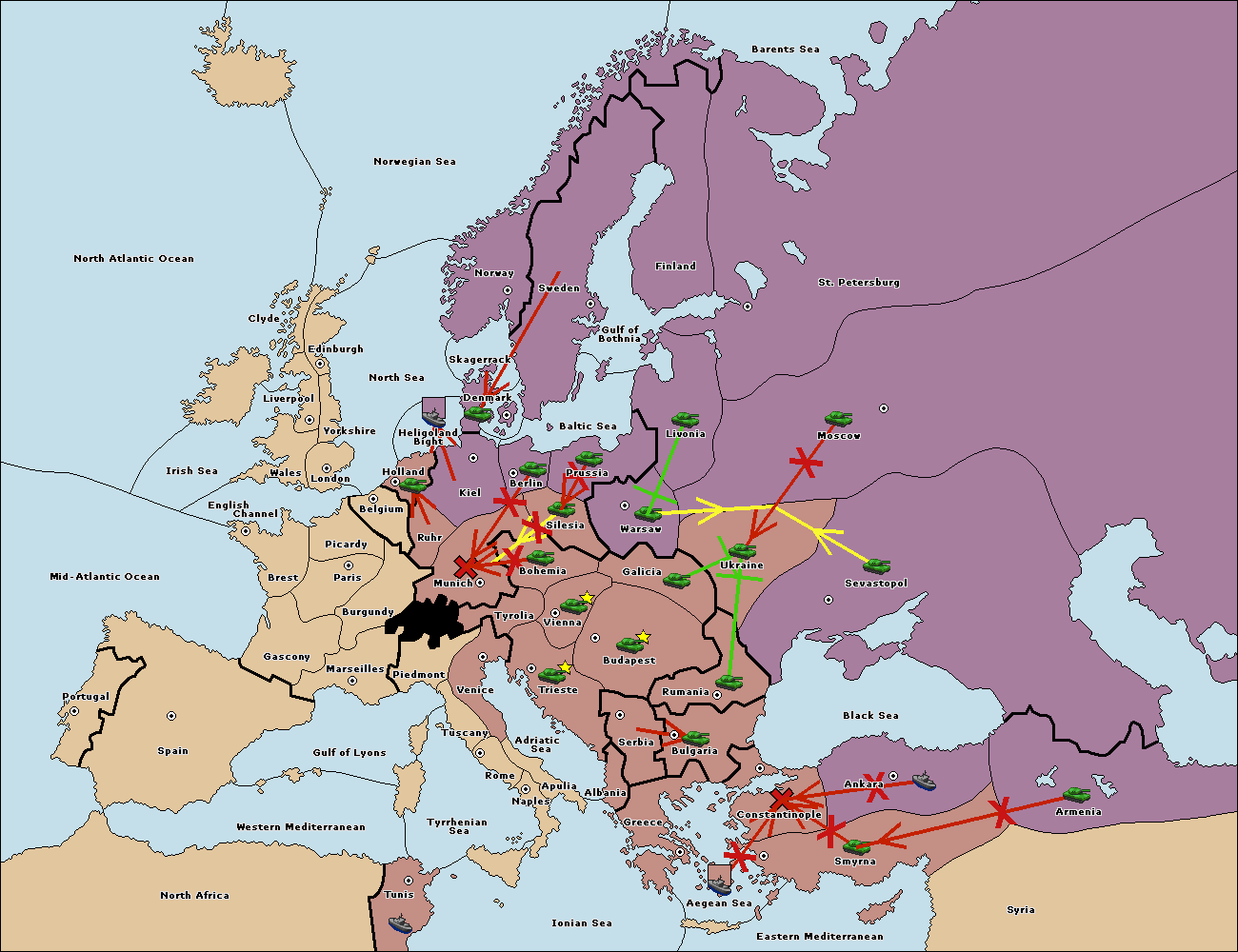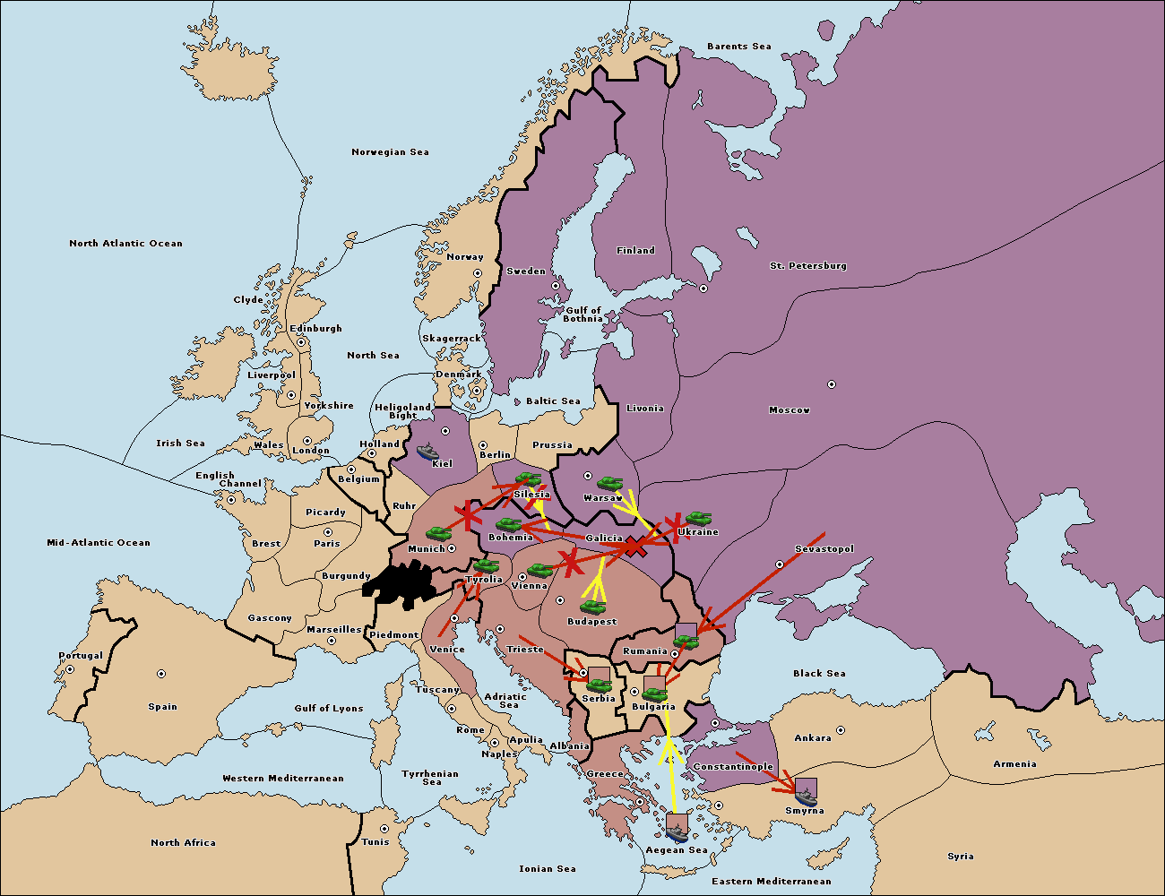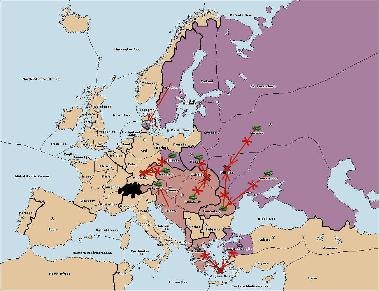 The fleet at Aegean Sea support move to Bulgaria from Rumania.