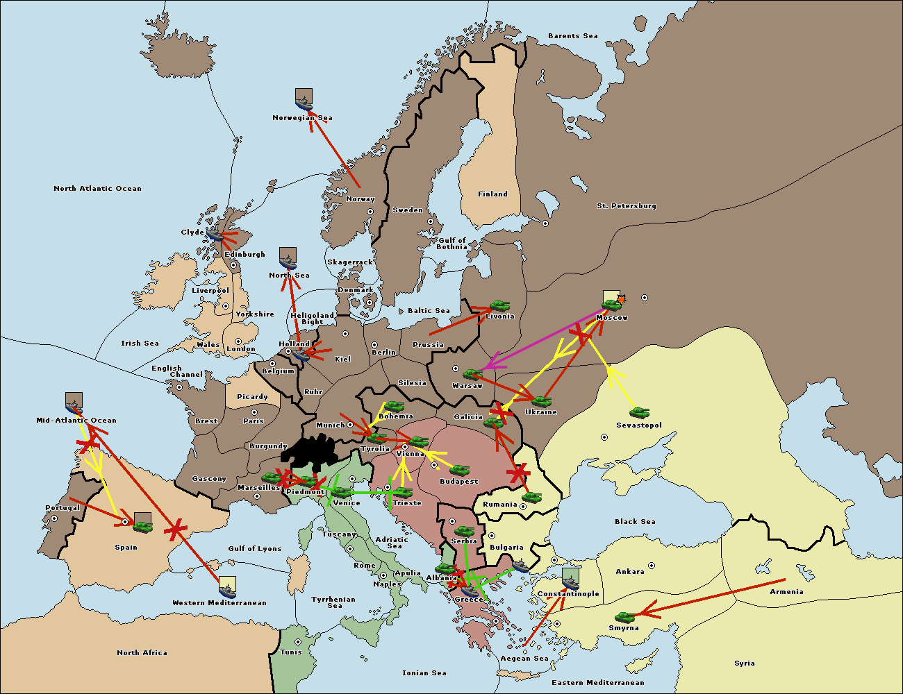 The fleet at Bulgaria (South Coast) move to Aegean Sea.