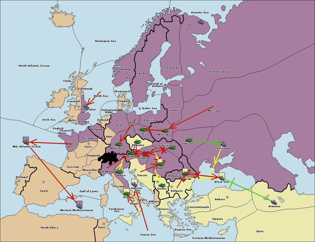 The fleet at Sevastopol support move to Rumania from Galicia.