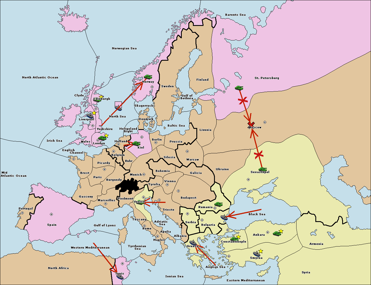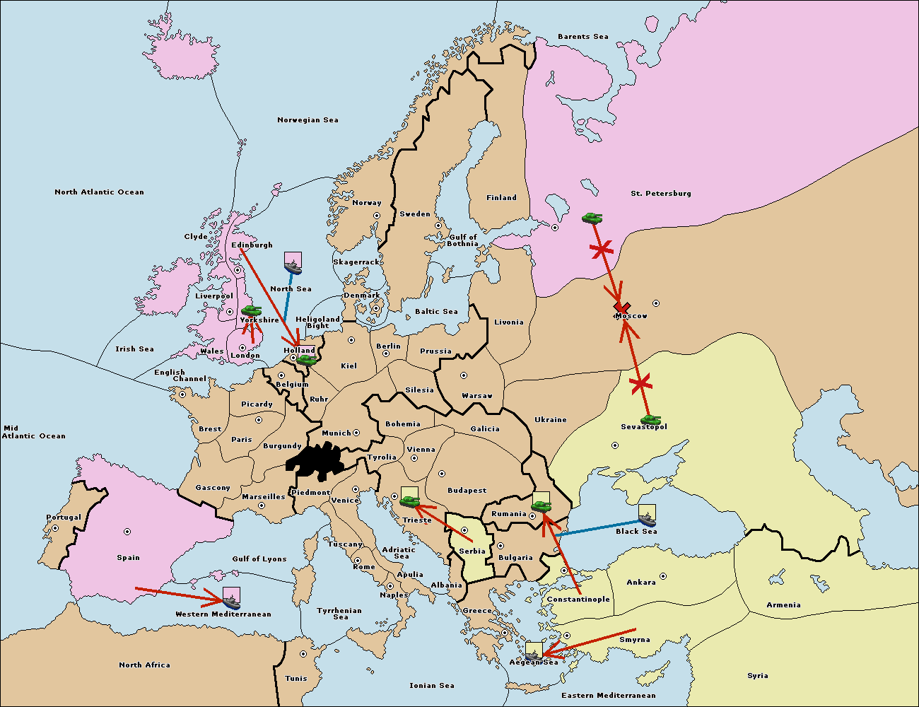 The army at Sevastopol support hold to Moscow.