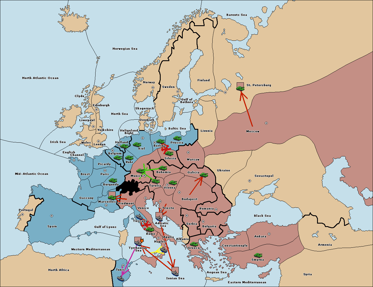 The fleet at Tyrrhenian Sea support move to Naples from Ionian Sea.