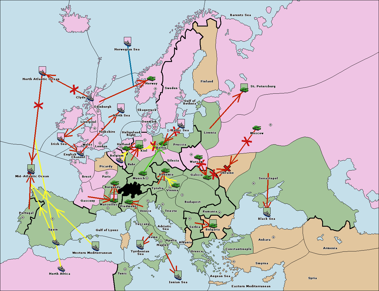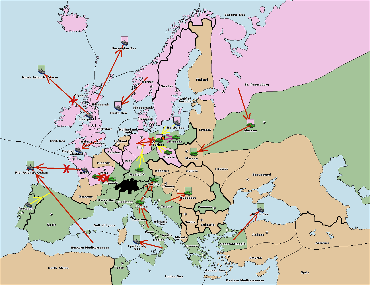 The fleet at Tyrrhenian Sea support move to Tunis from Ionian Sea.