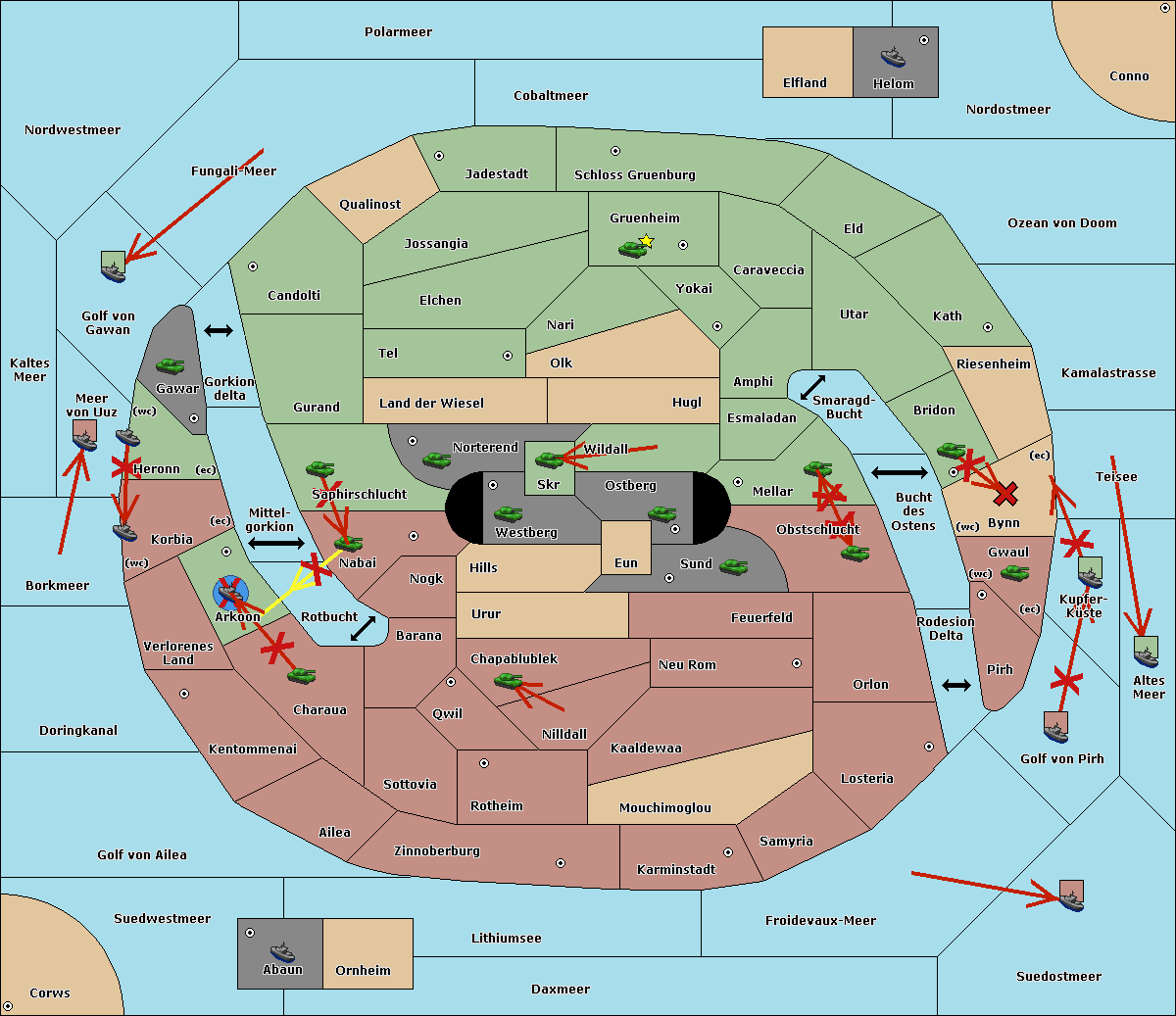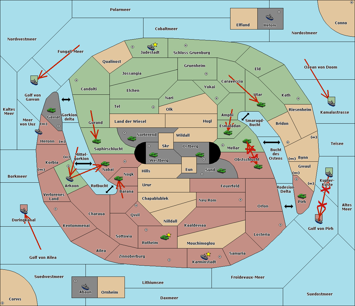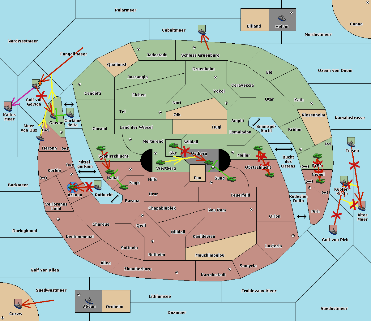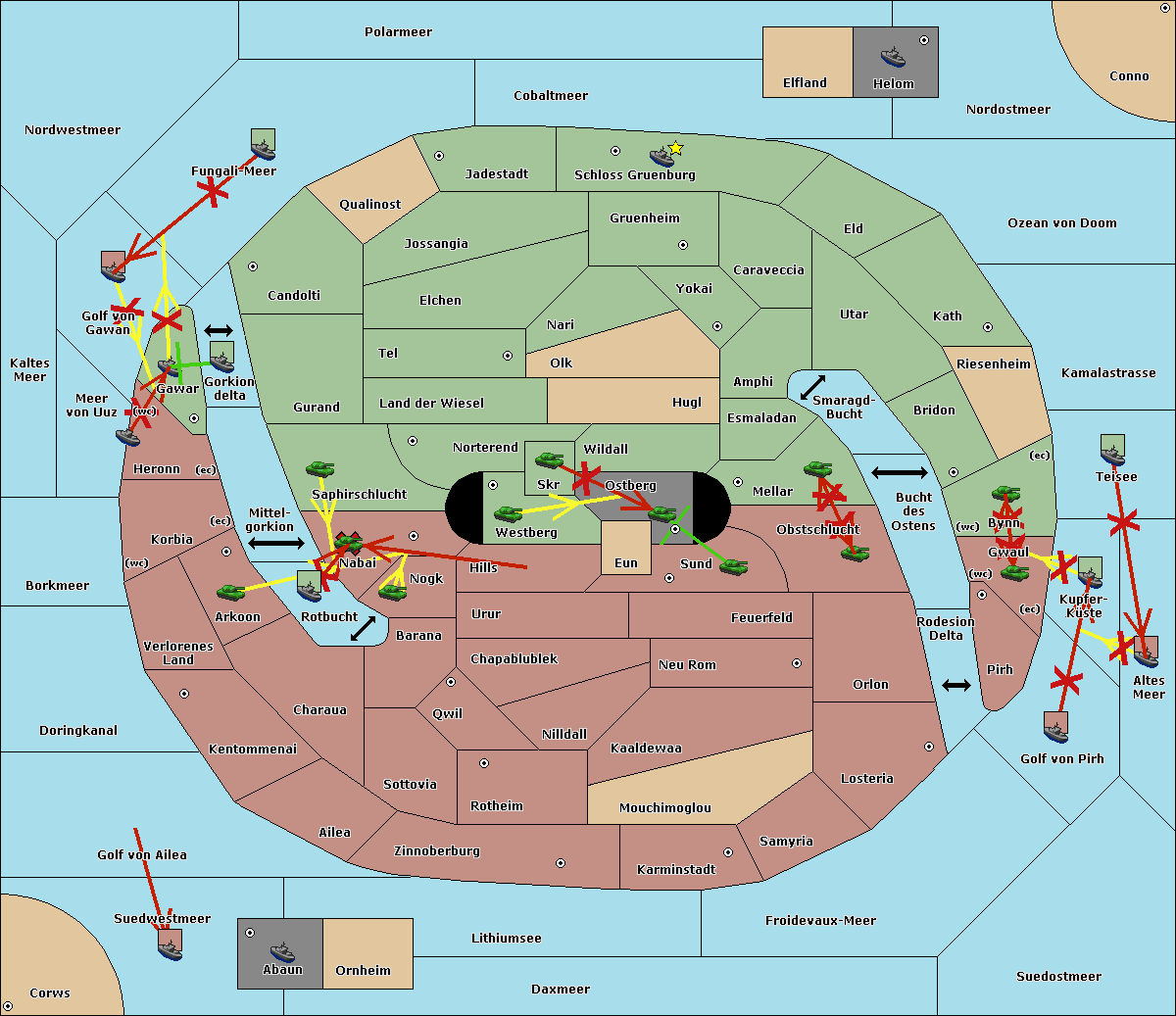 The fleet at Schloss Gruenburg move to Ozean von Doom.