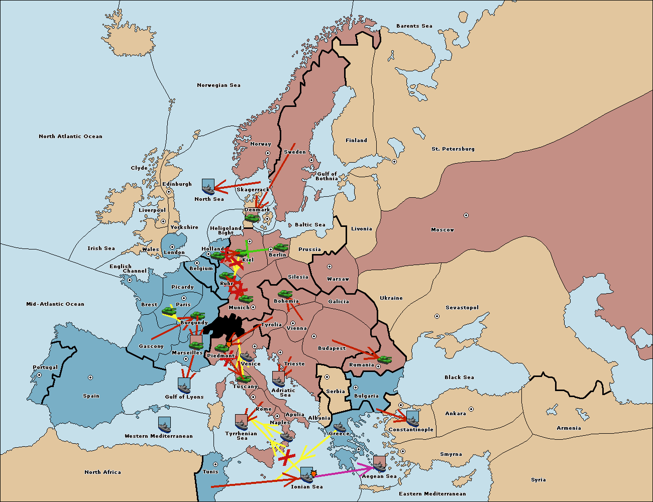 The fleet at Naples support move to Ionian Sea from Tunis.