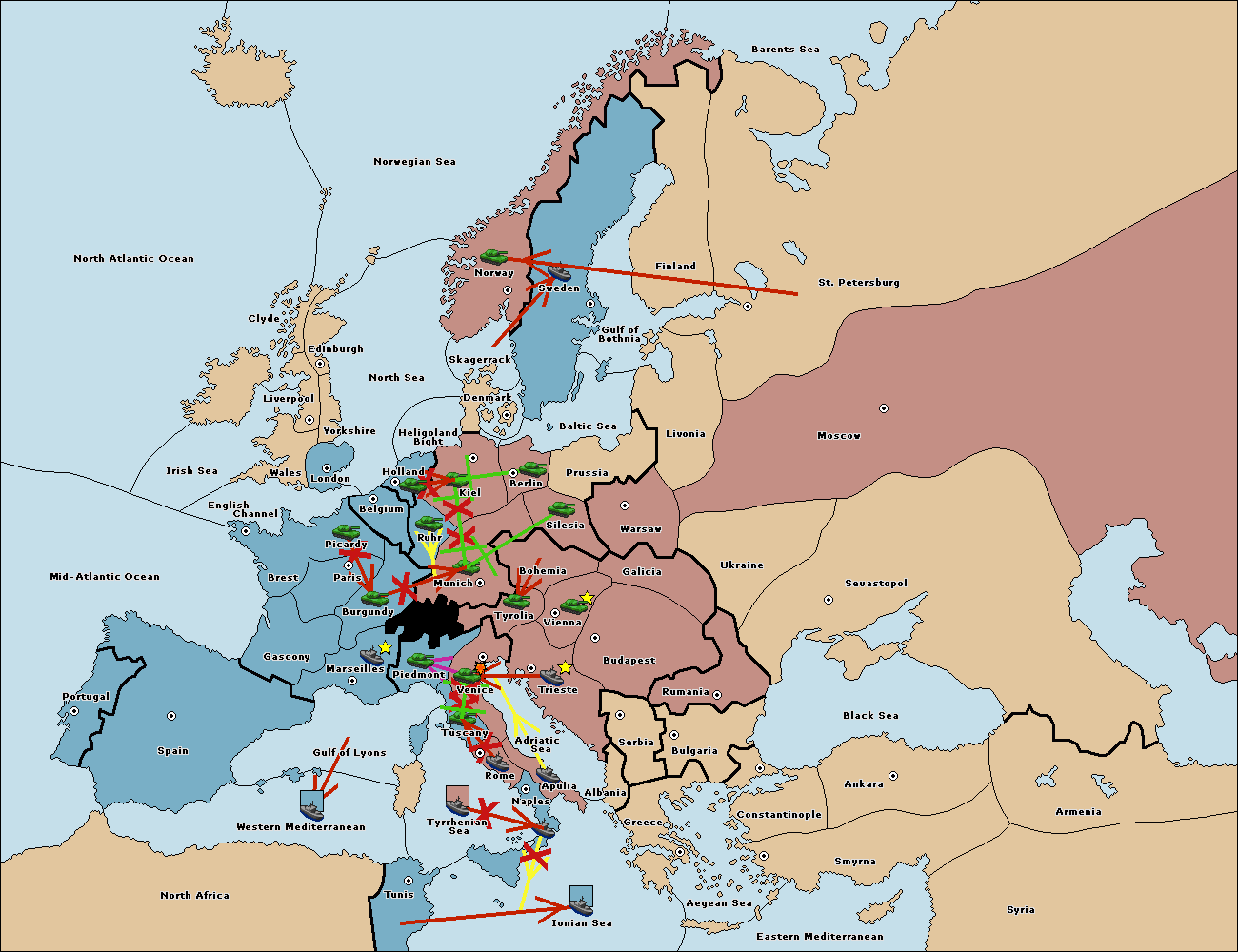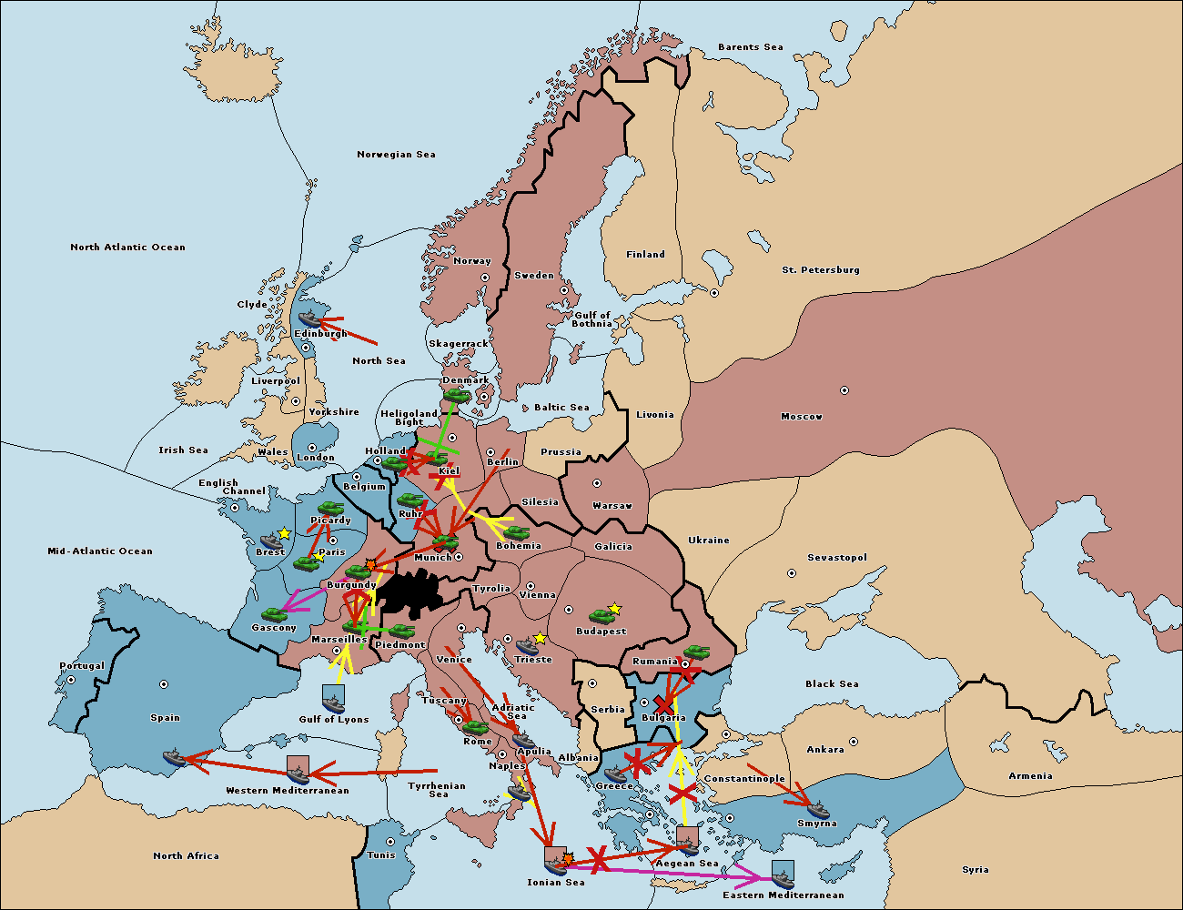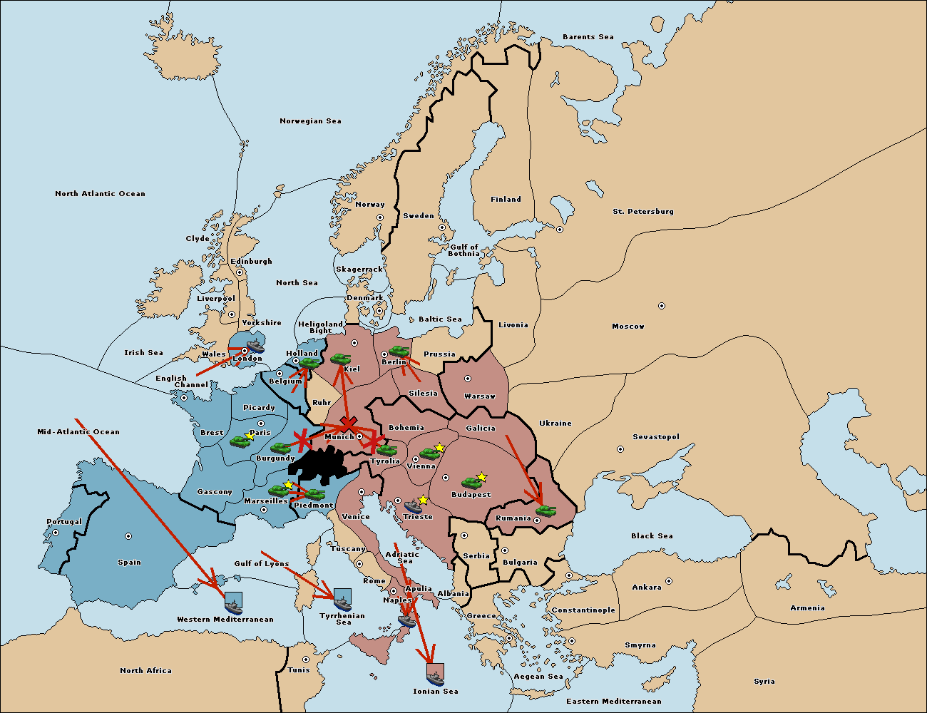 The fleet at Mid-Atlantic Ocean move to Western Mediterranean.