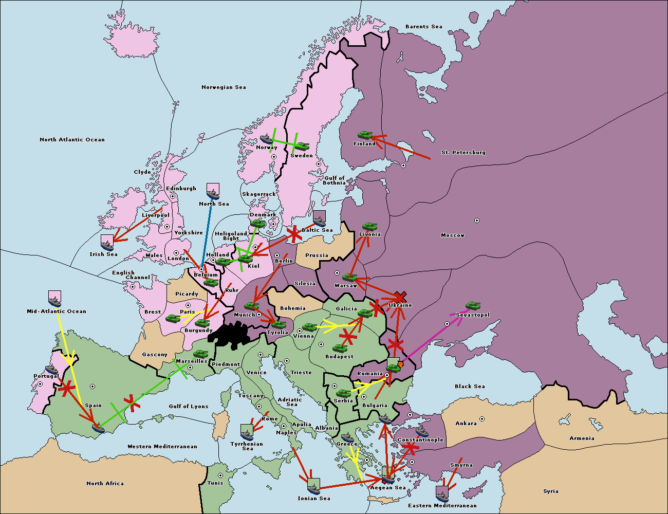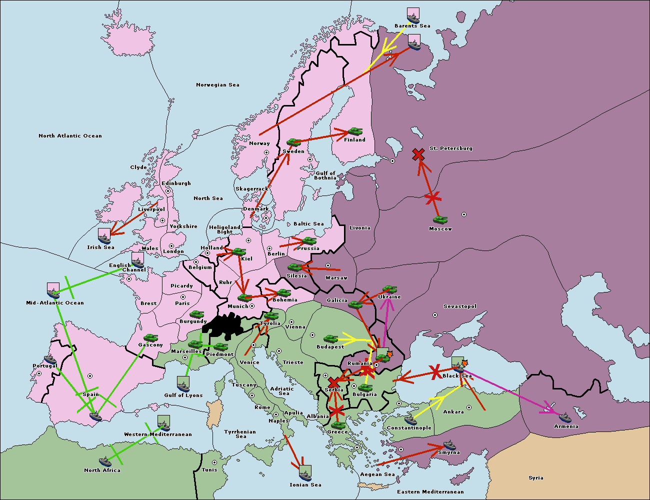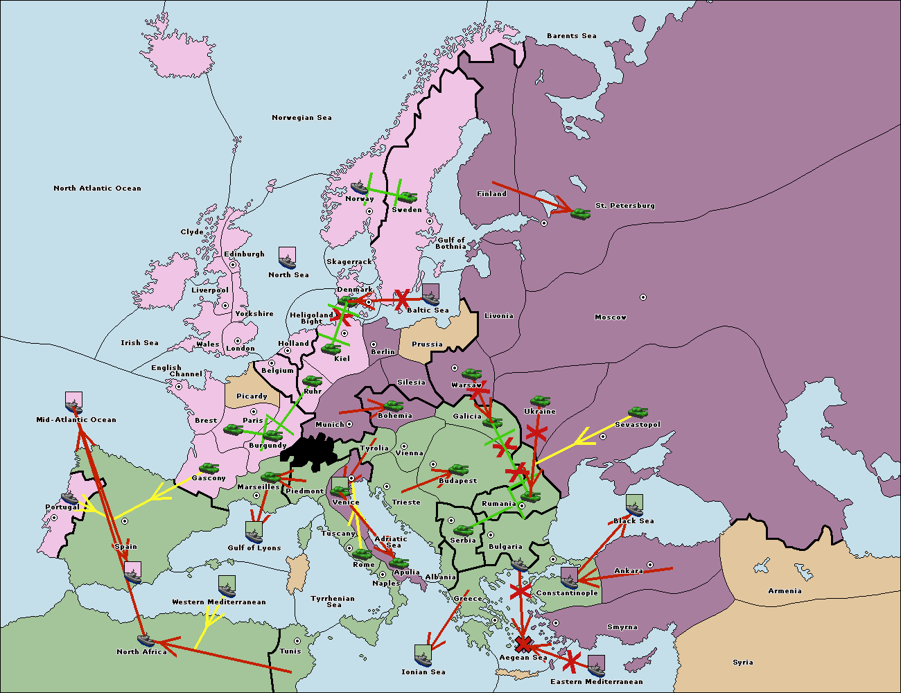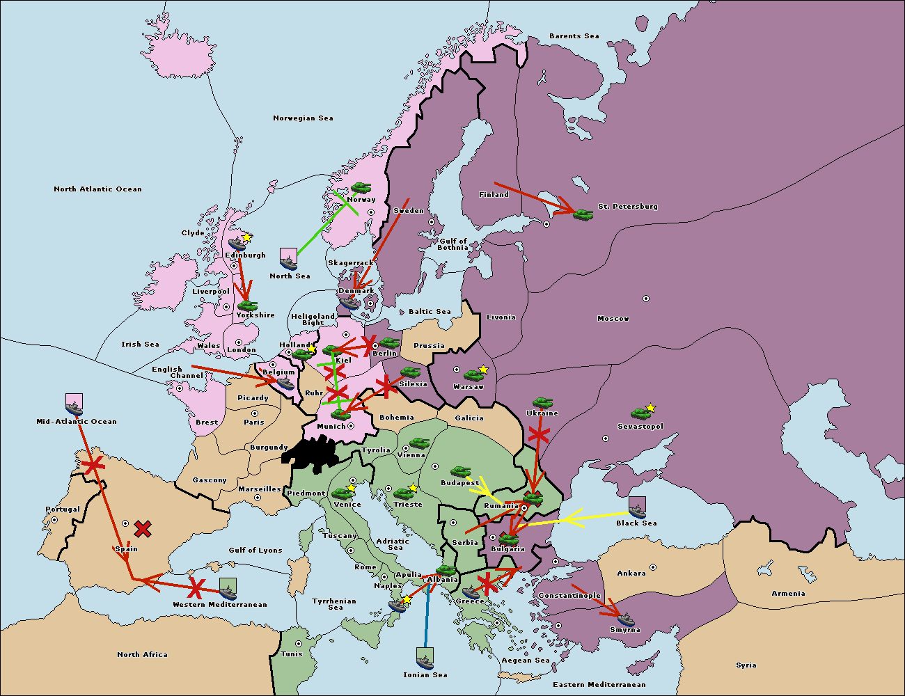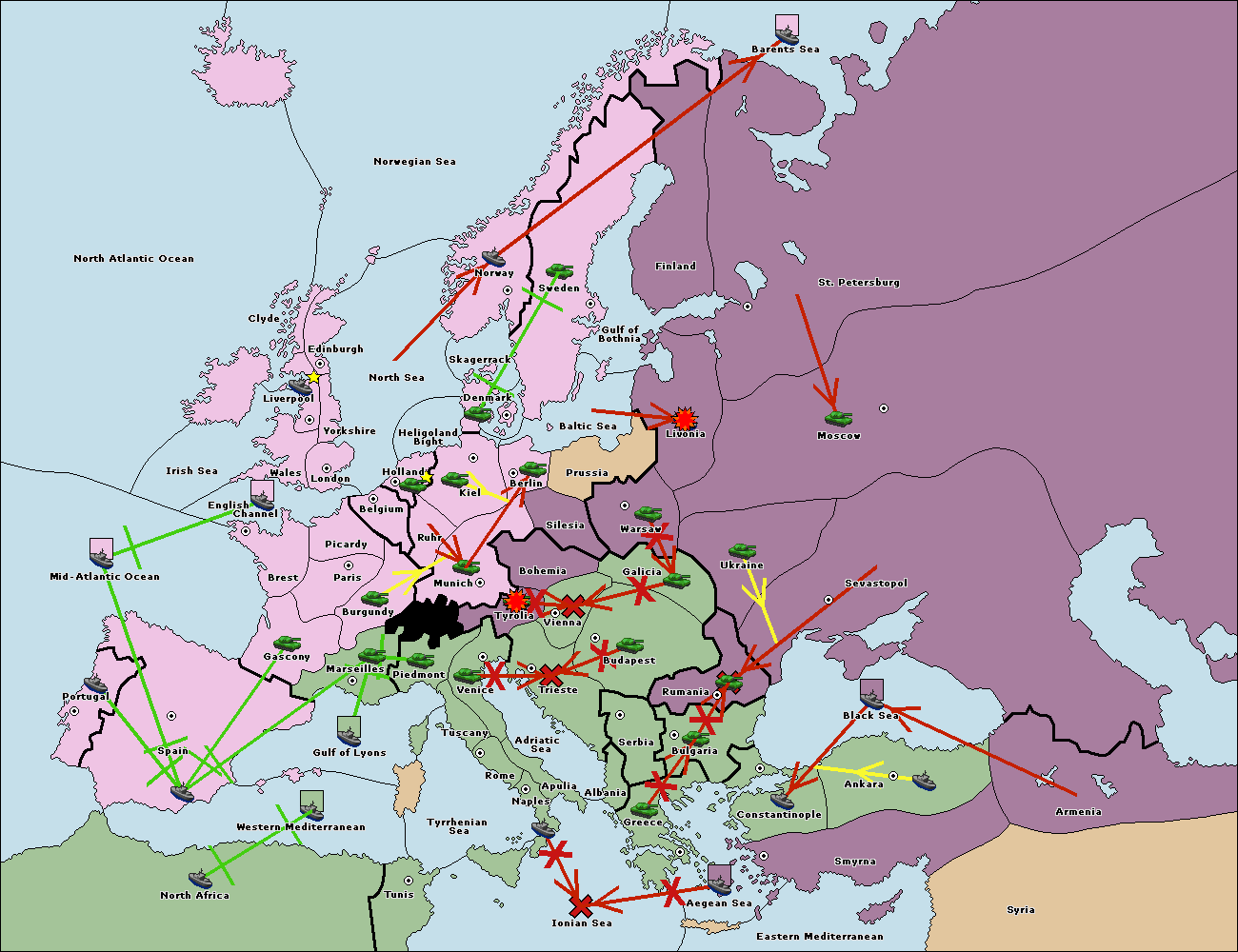 The fleet at Greece move to Bulgaria (South Coast).