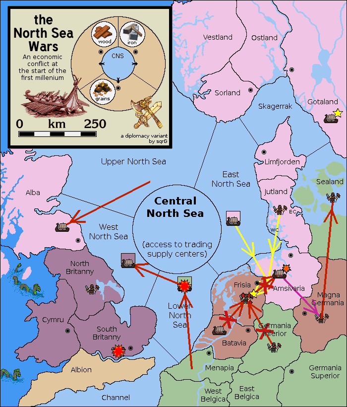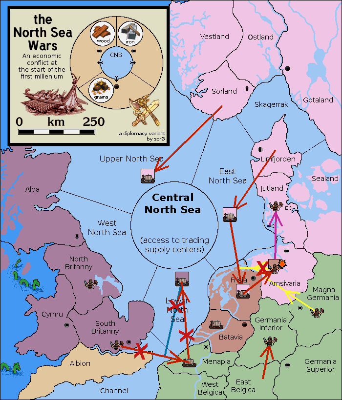 The fleet at East North Sea support move to Amsivaria from Frisia.