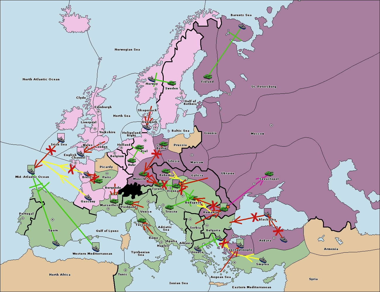 The fleet at Bulgaria (South Coast) move to Constantinople.