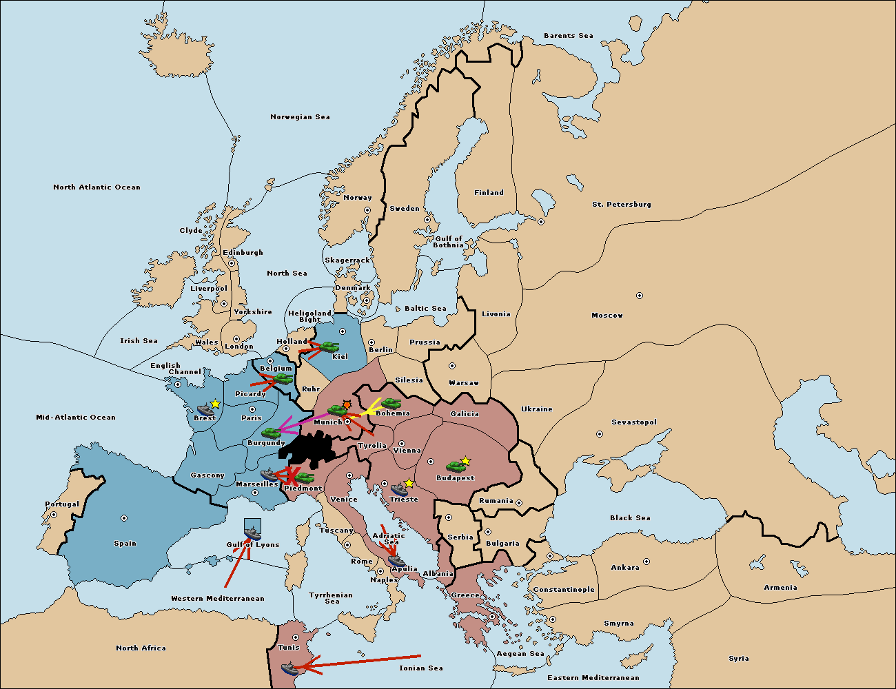The fleet at Western Mediterranean move to Gulf of Lyons.