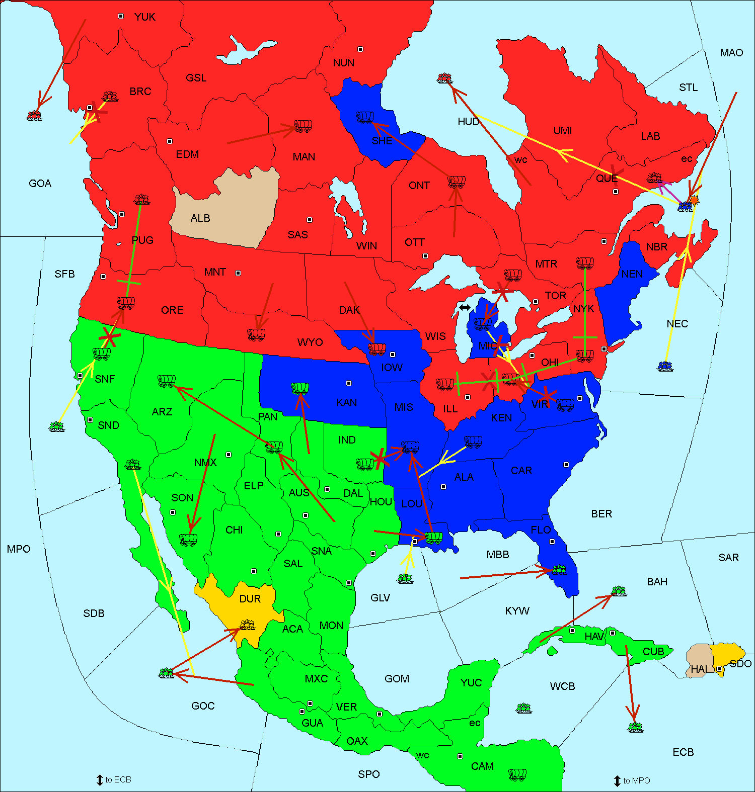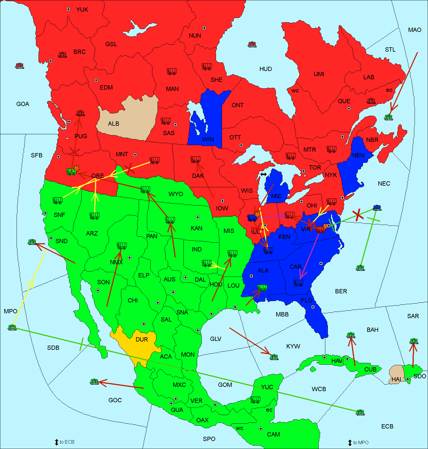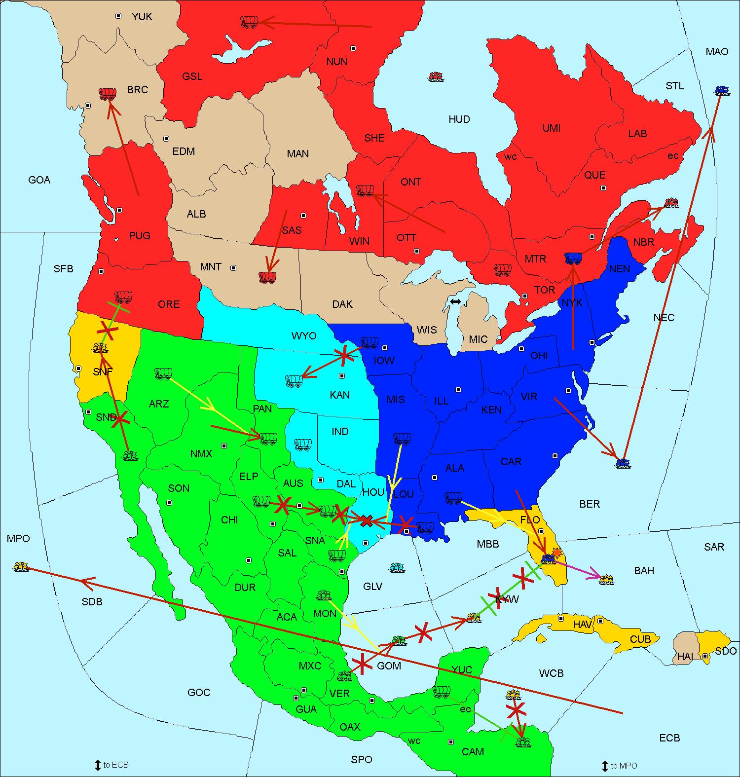 The fleet at Mid-Atlantic Ocean move to Hudson Bay.
