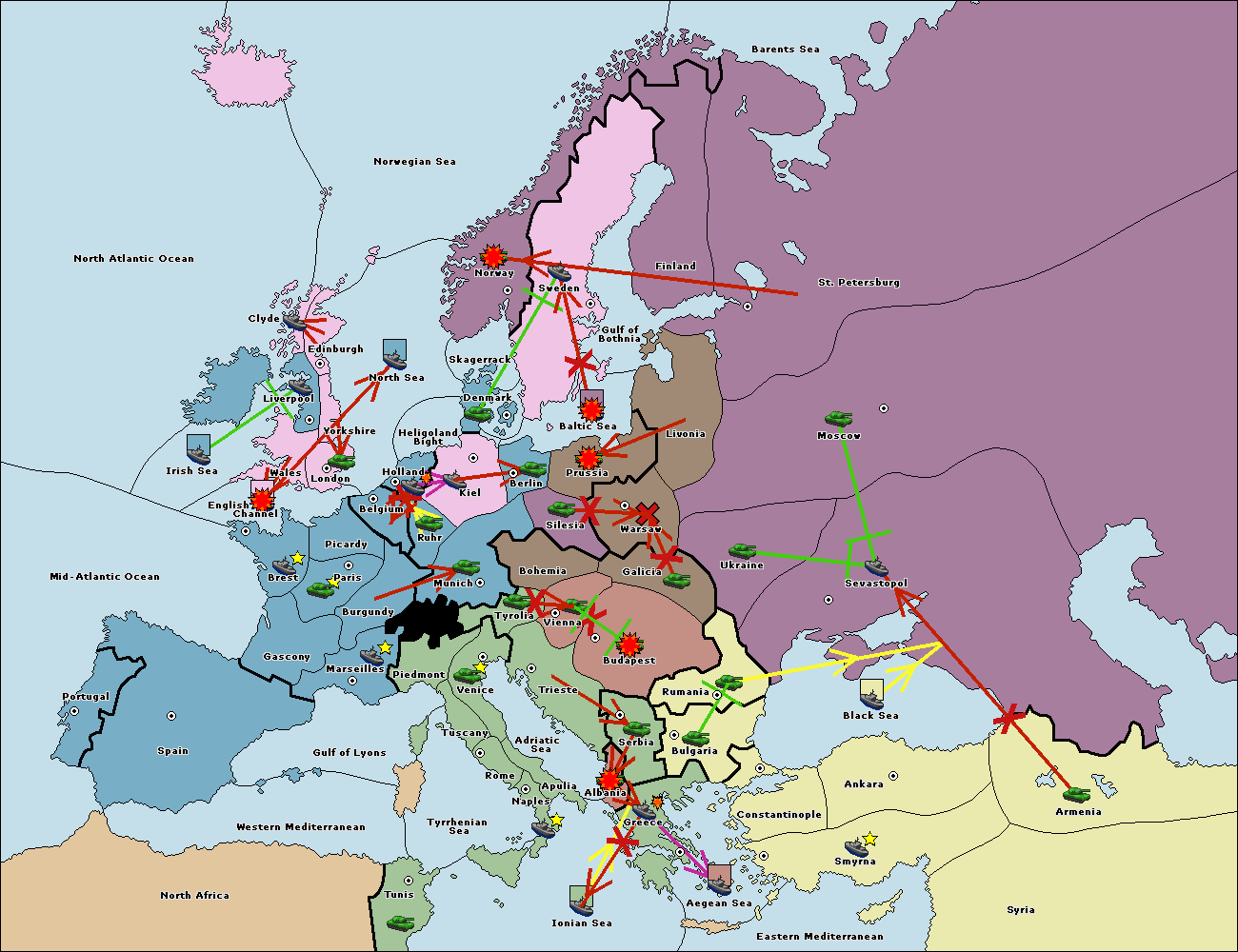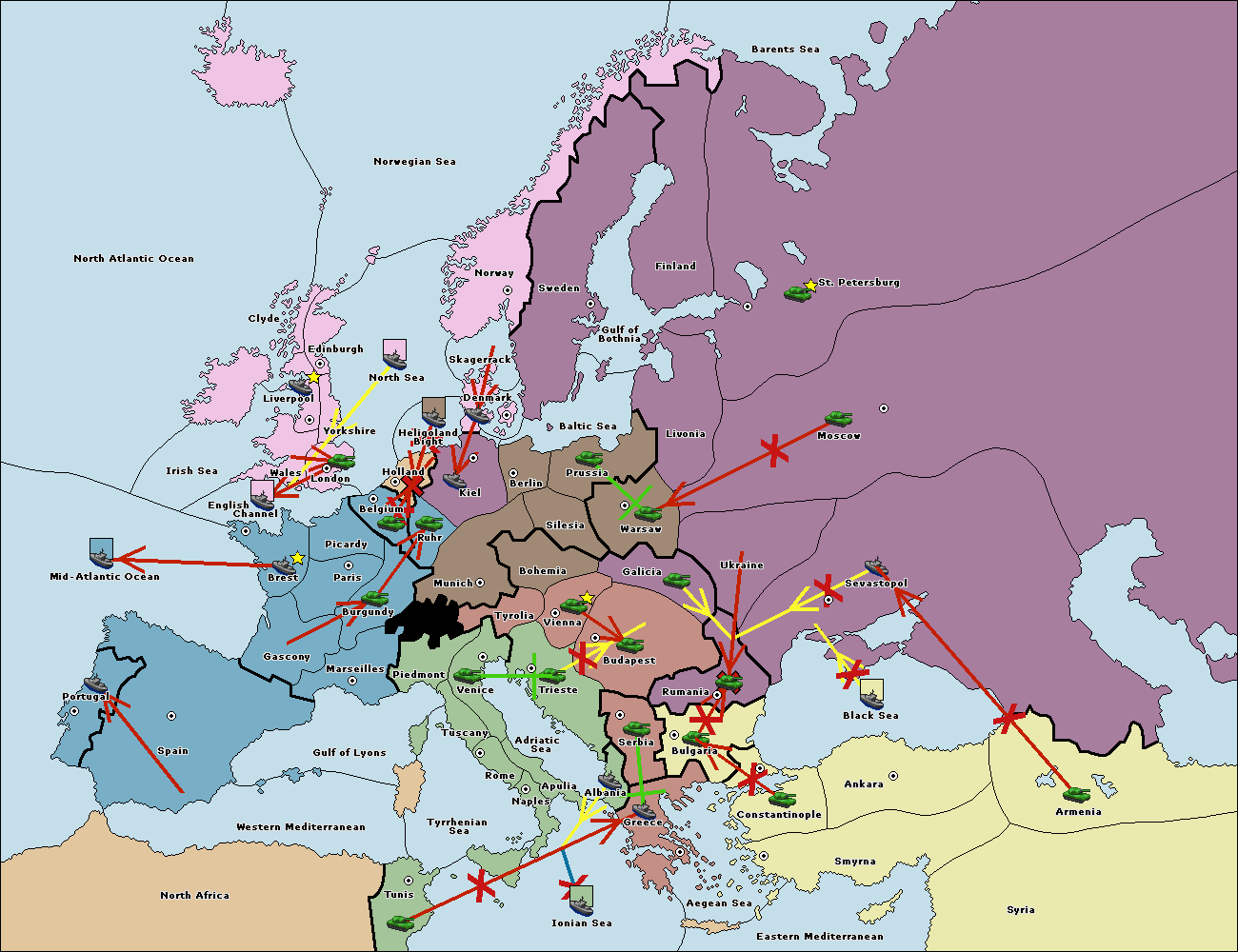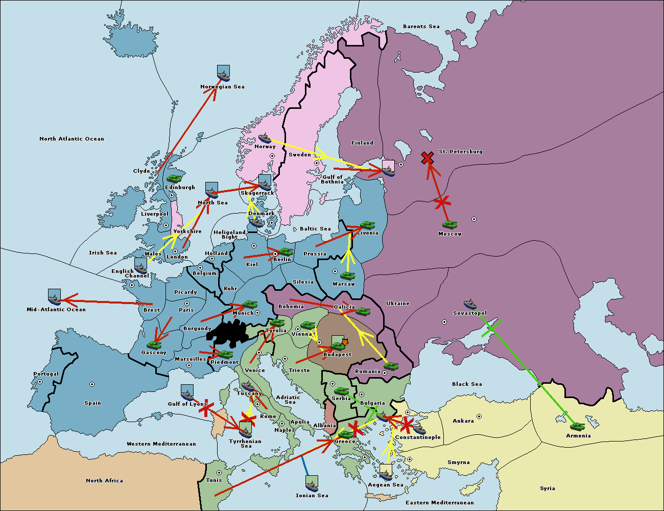 The fleet at Bulgaria (South Coast) move to Constantinople.
