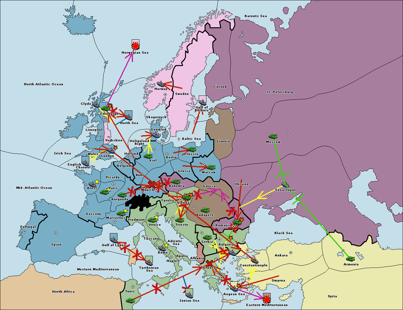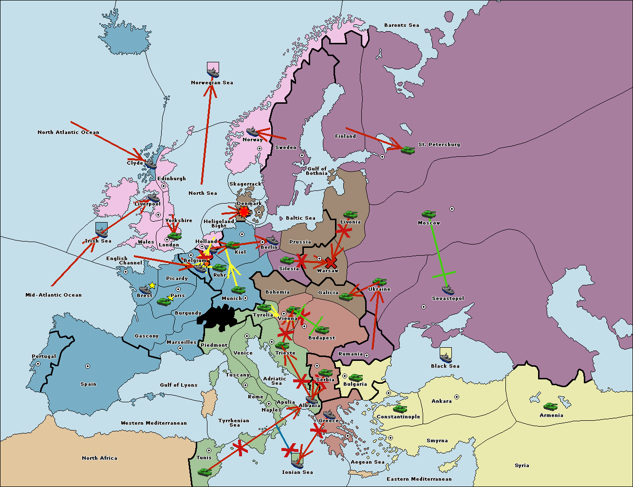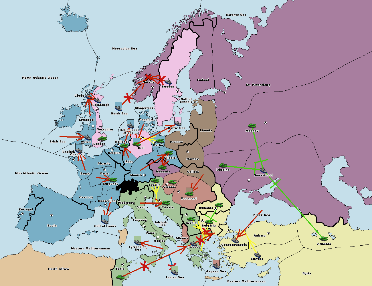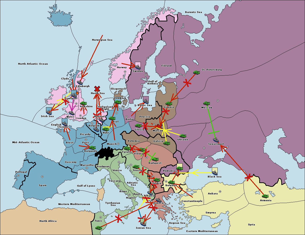 The fleet at Bulgaria (South Coast) move to Constantinople.