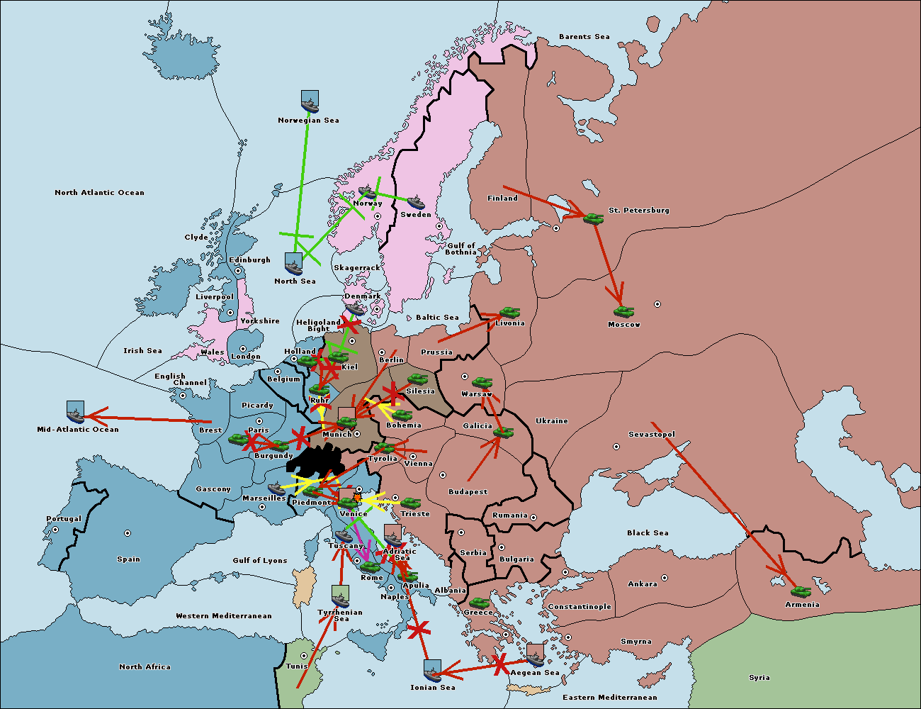 The army at Munich support move to Tyrolia from Piedmont.