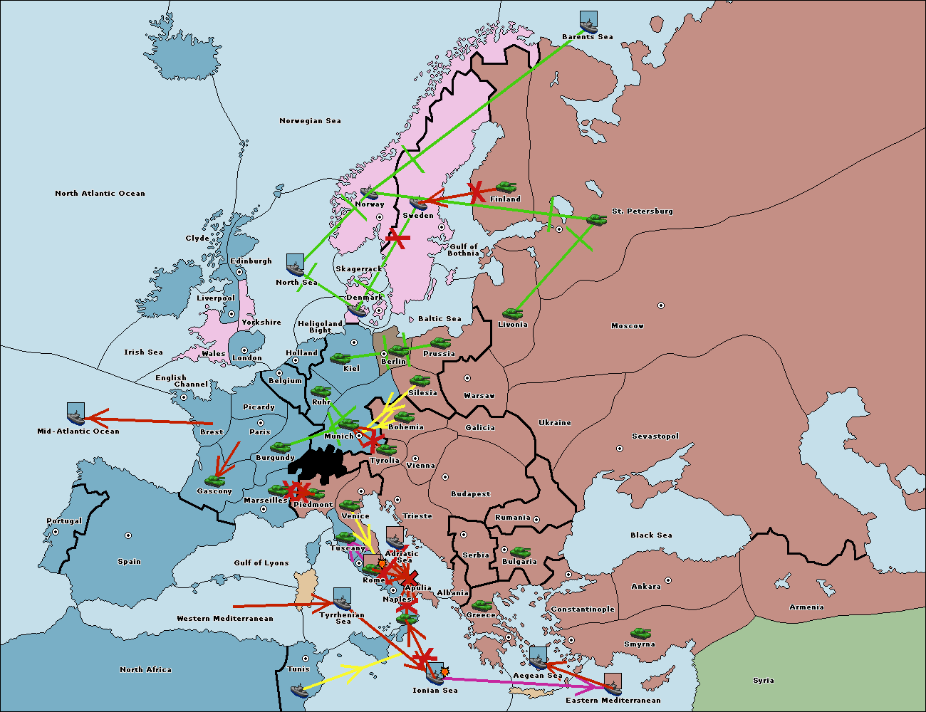The fleet at Ionian Sea support move to Tyrrhenian Sea from Naples.