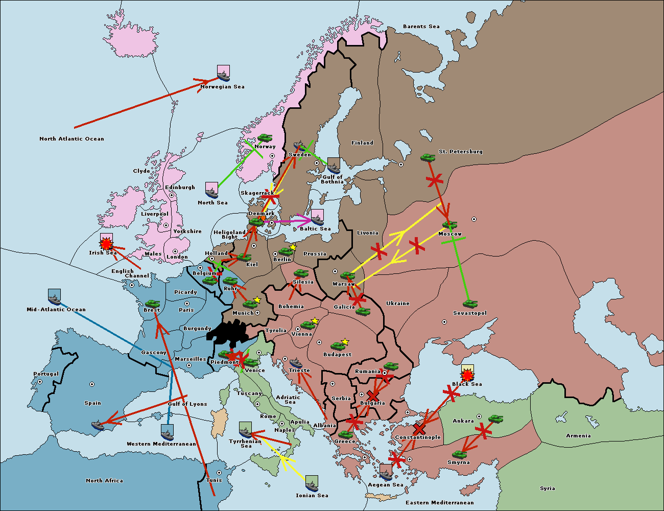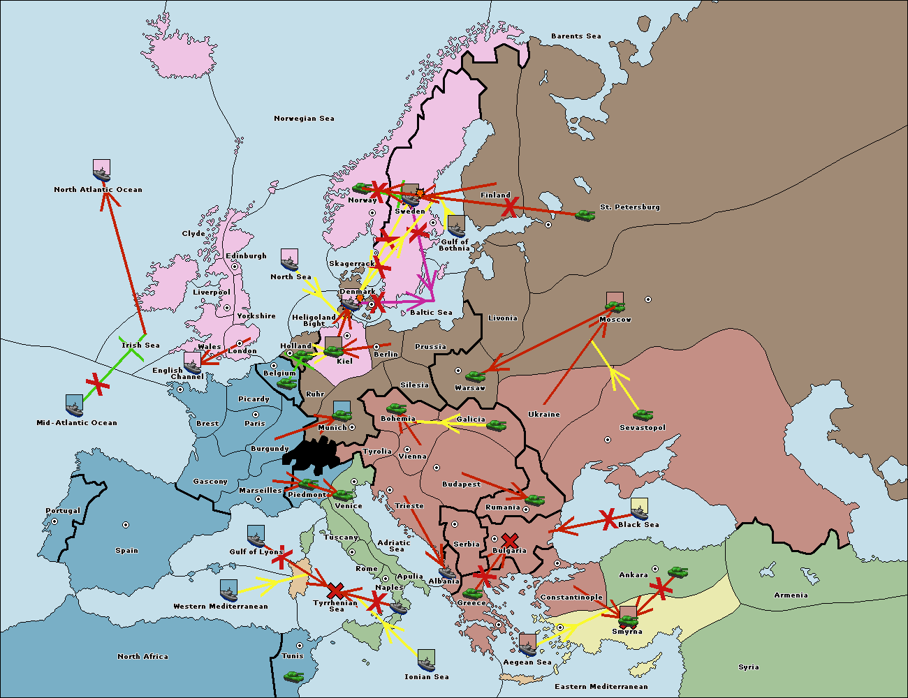 The fleet at Aegean Sea support move to Smyrna from Constantinople.