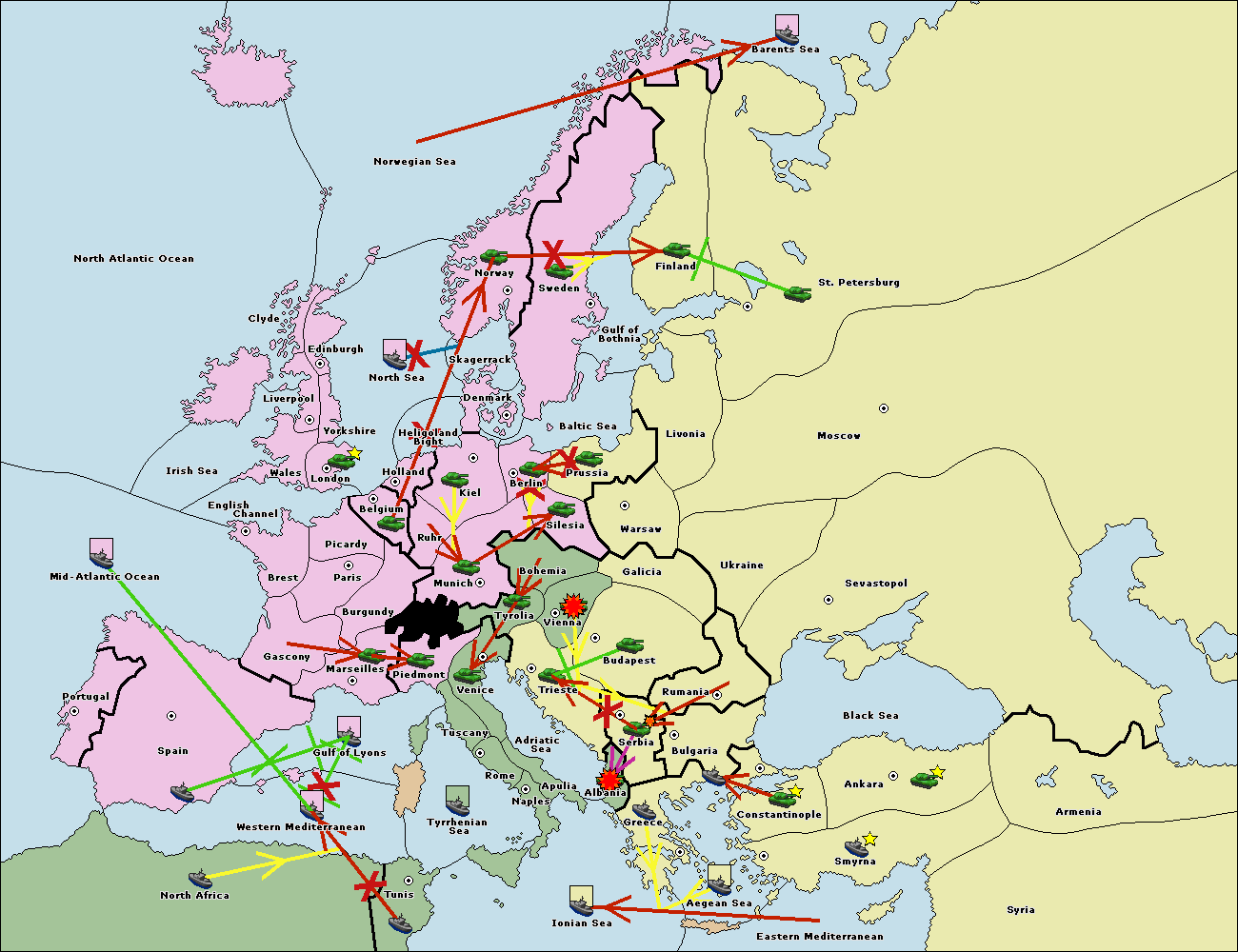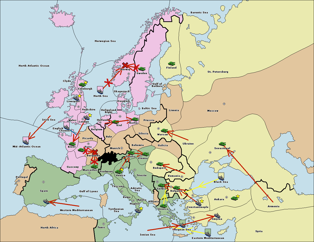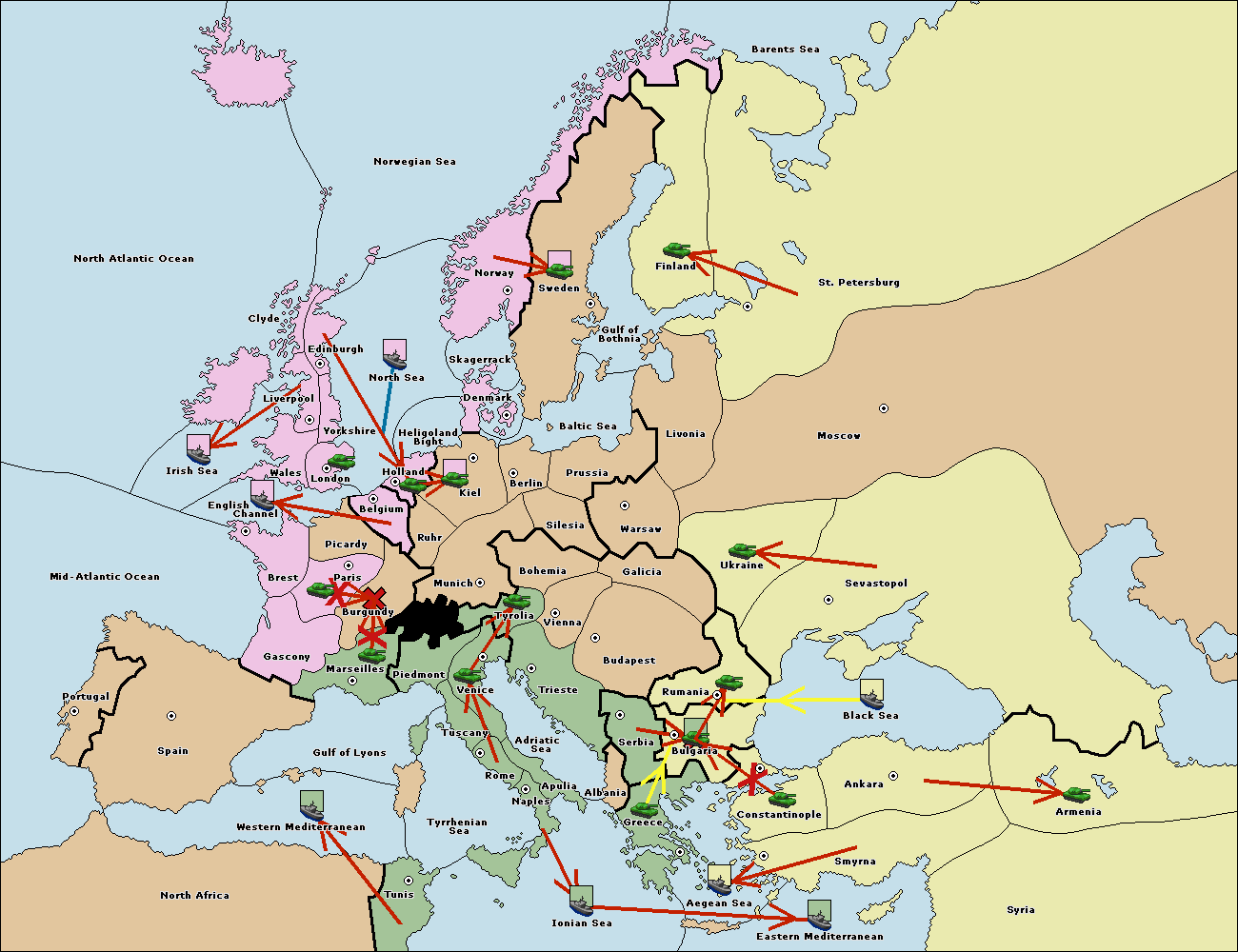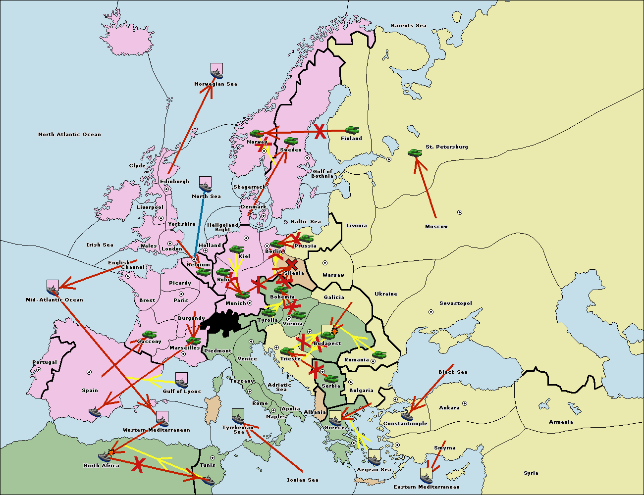 The fleet at Spain (South Coast) support hold to Western Mediterranean.