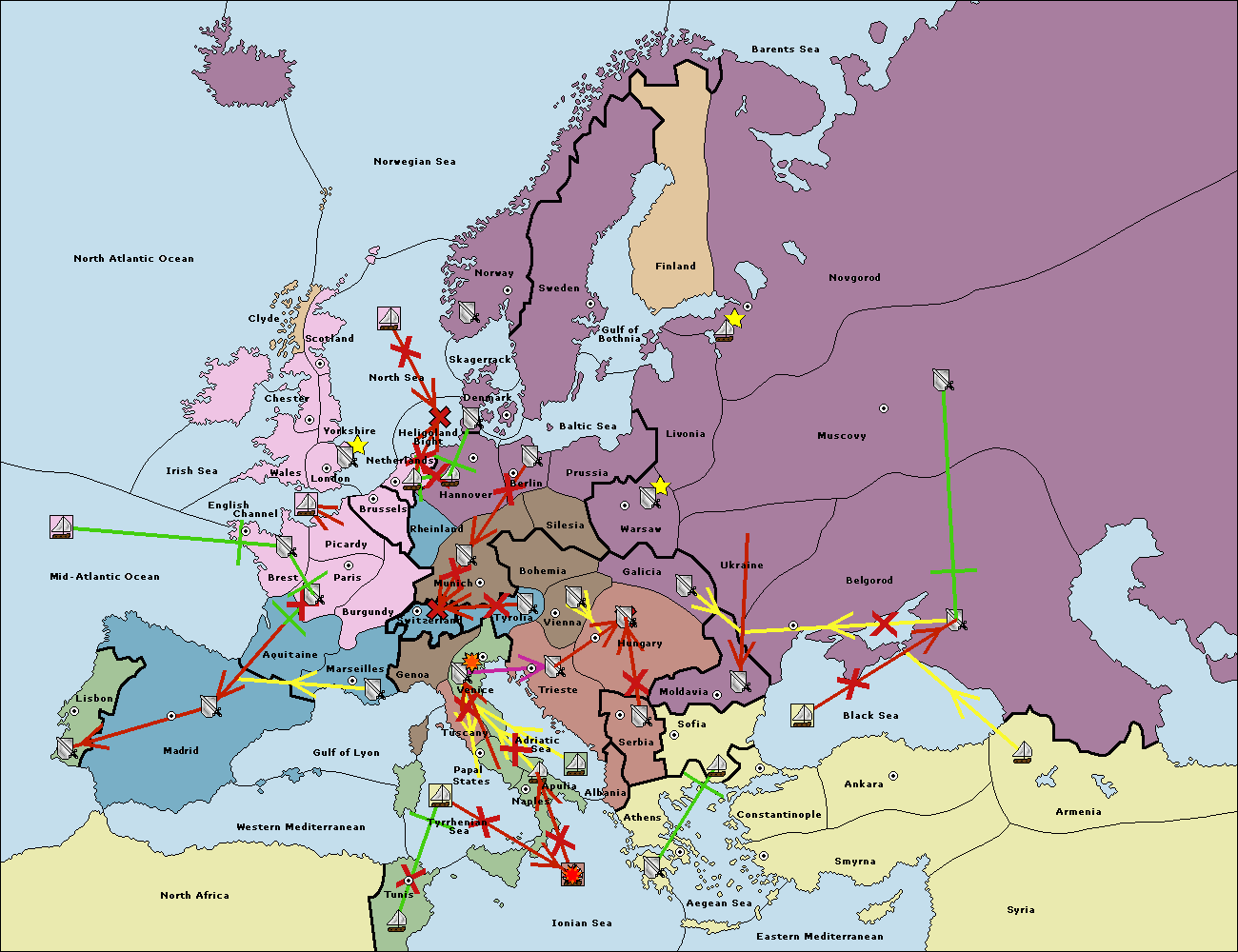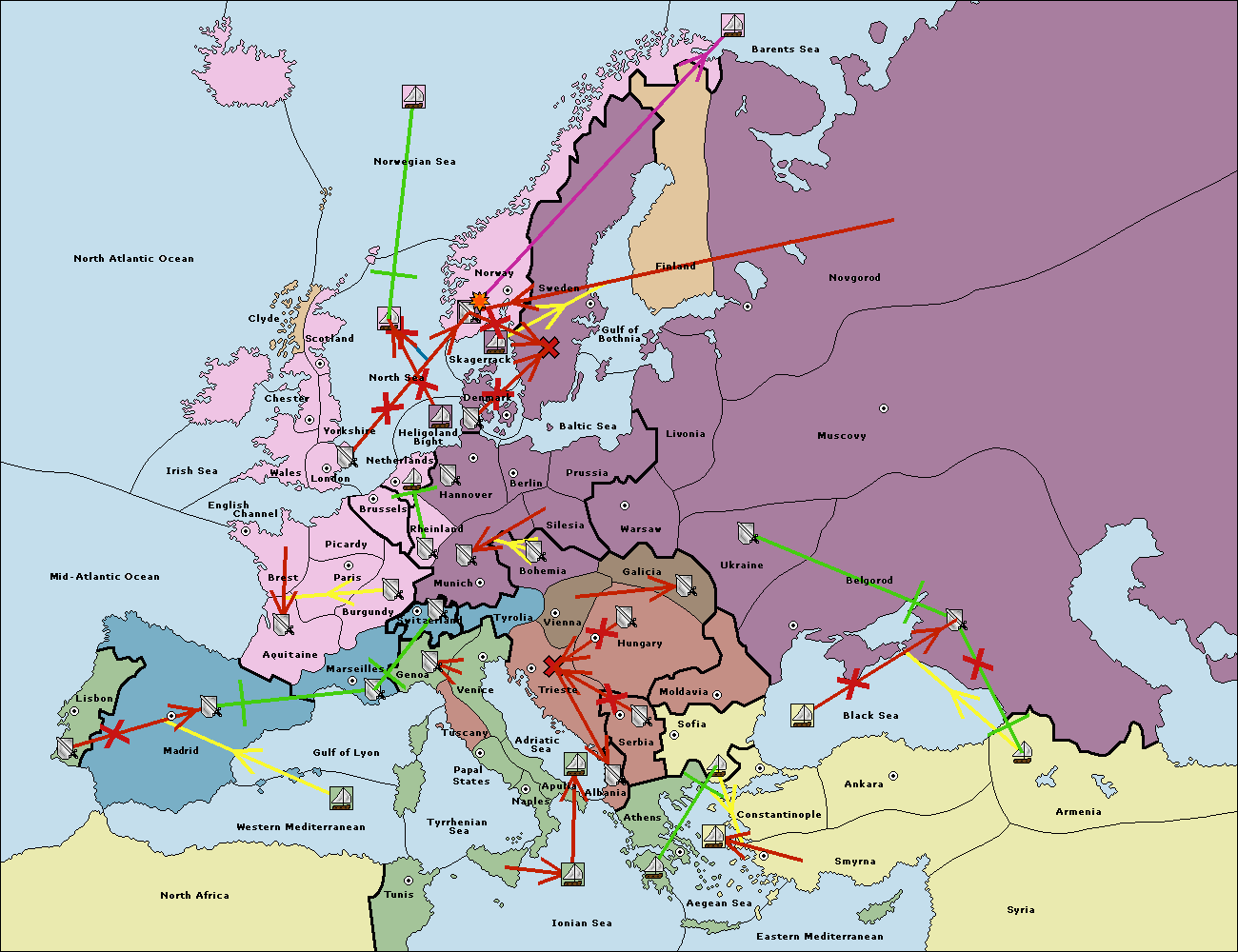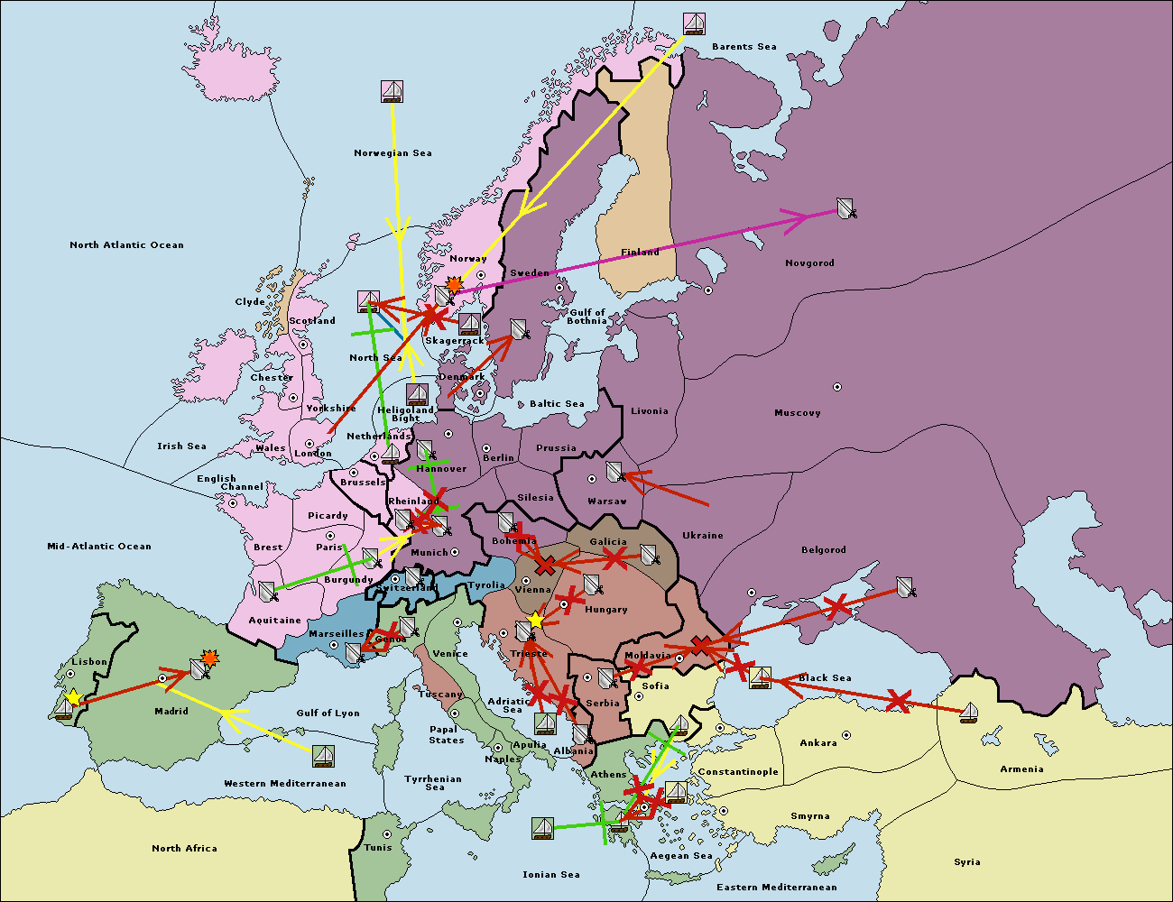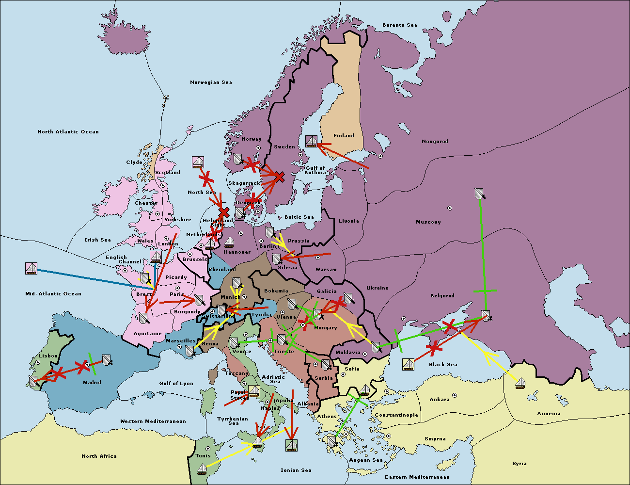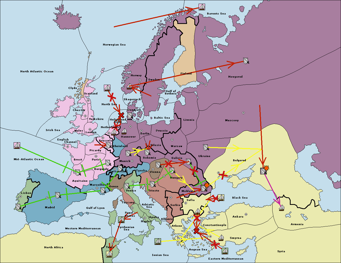 The fleet at Sofia (South Coast) move to Constantinople.