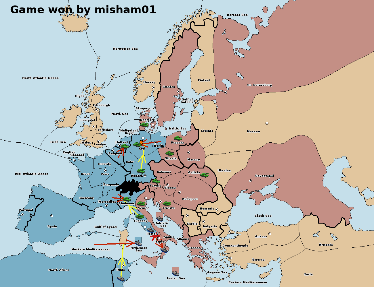 The fleet at Gulf of Lyons move to Tyrrhenian Sea.