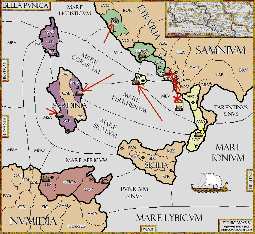 The fleet at Iscia support move to Mare Corsicum from Mare Latium.