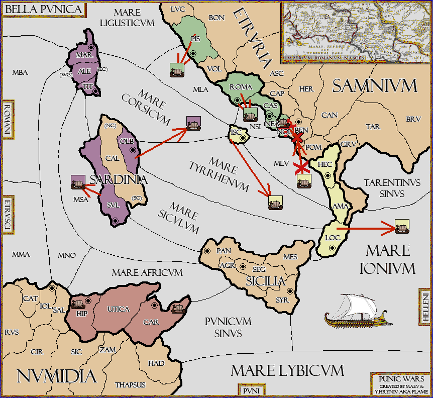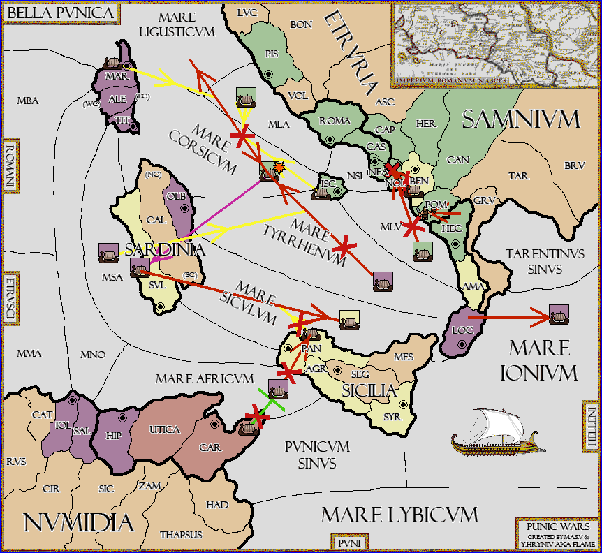 The fleet at Mare Corsicum move to Mare Tyrrhenum.