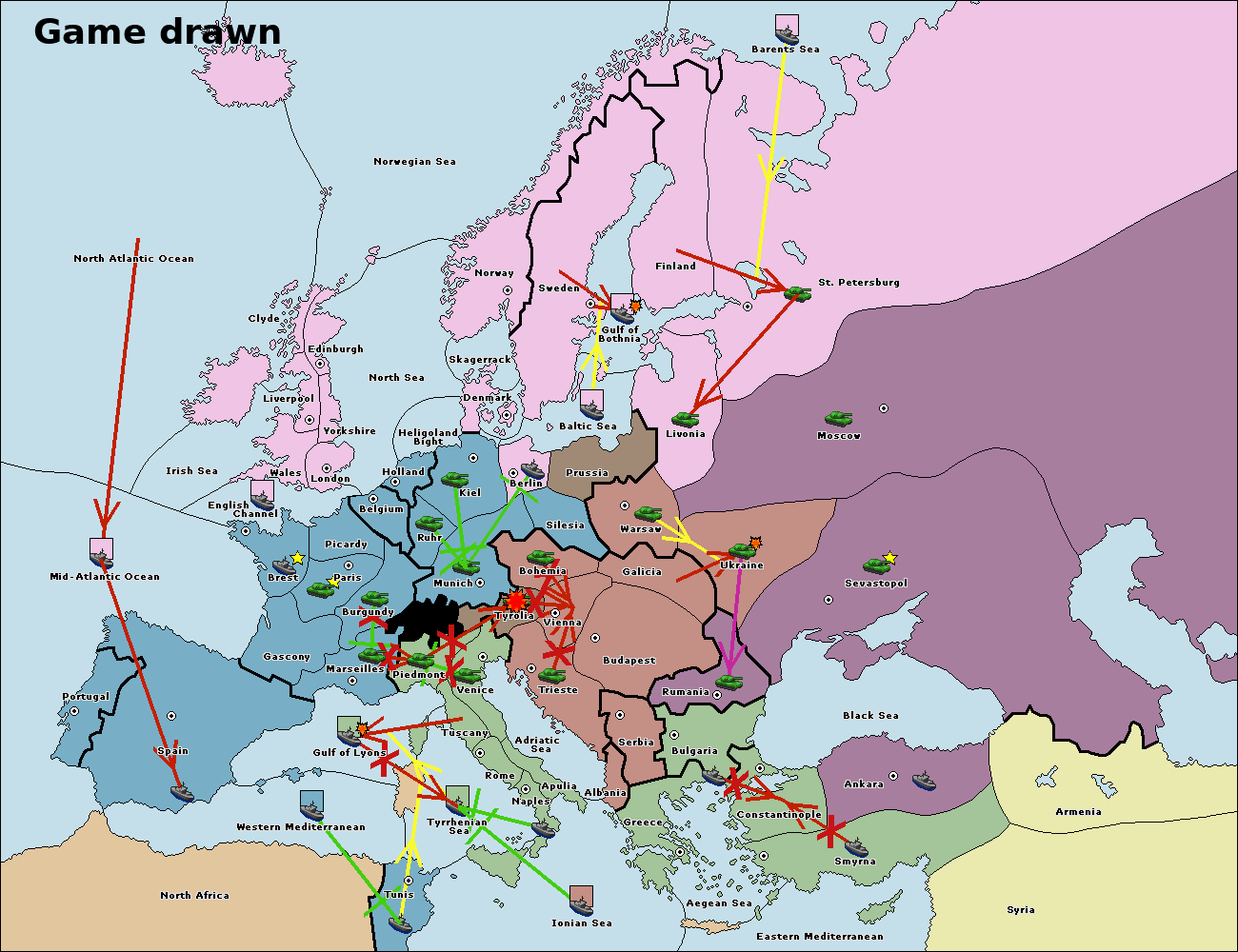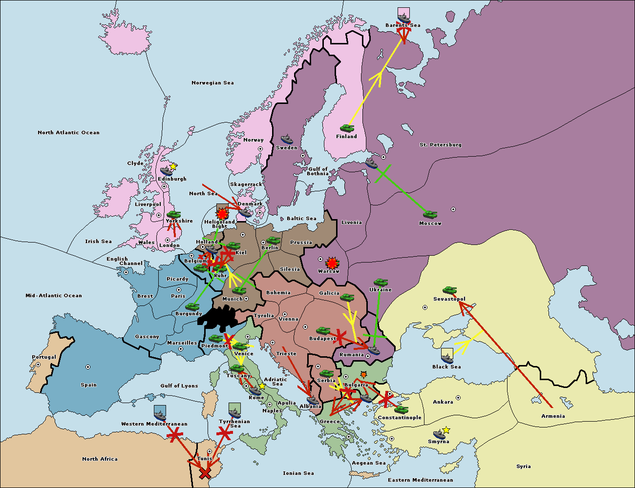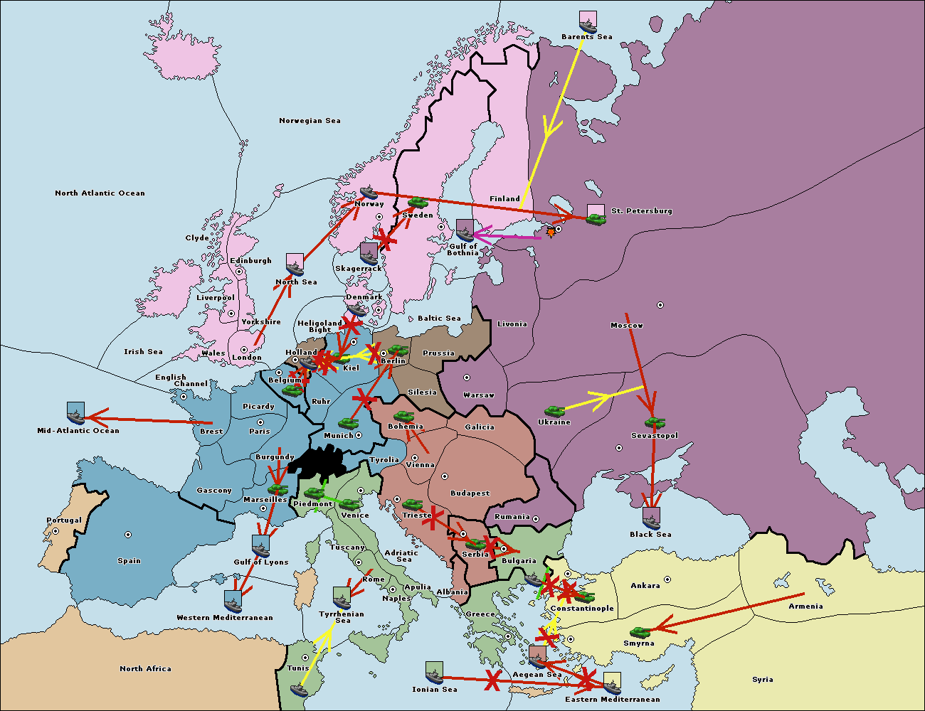 The fleet at Bulgaria (South Coast) move to Constantinople.