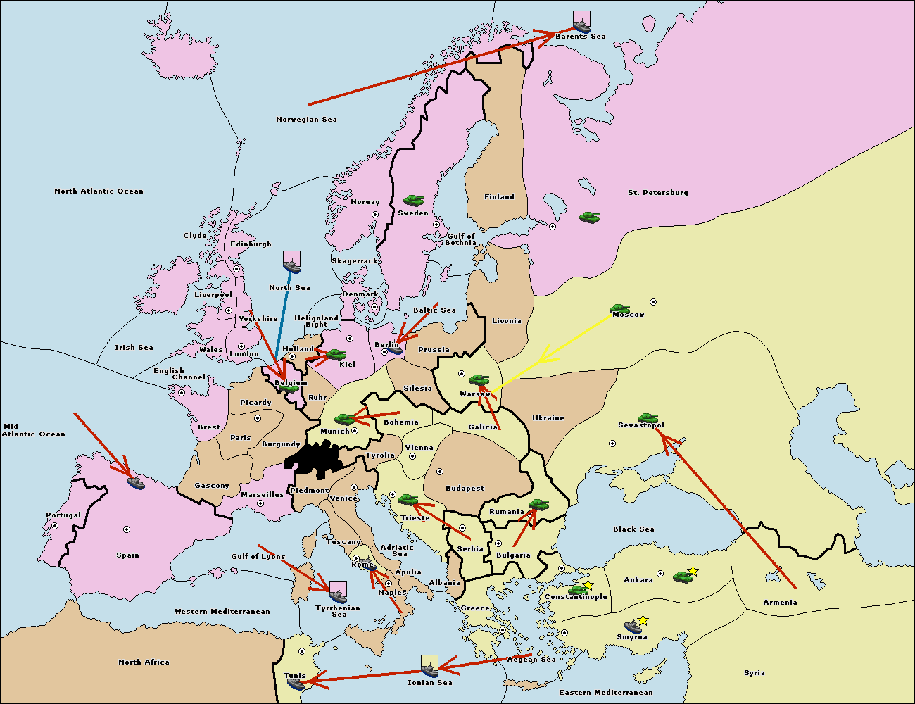 The fleet at Bulgaria (South Coast) move to Greece.