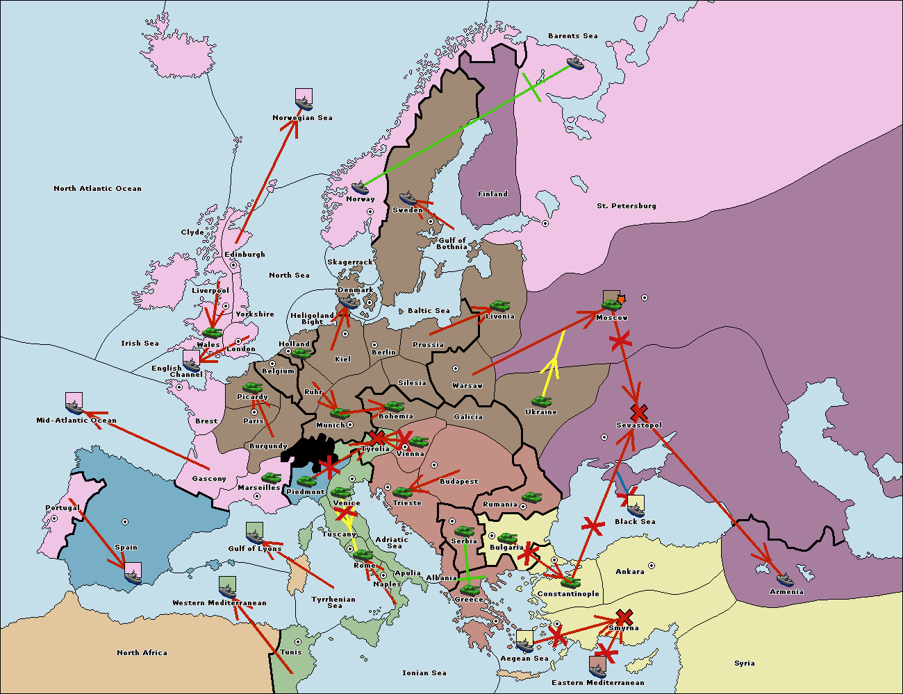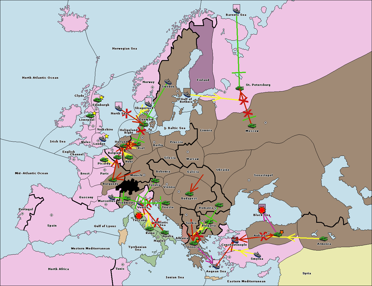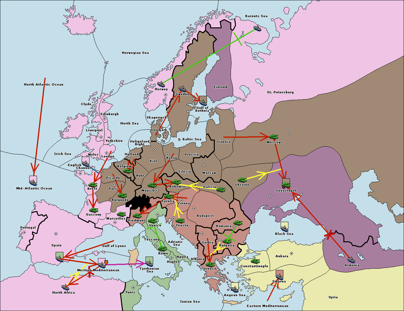 The fleet at Black Sea support move to Bulgaria from Constantinople.