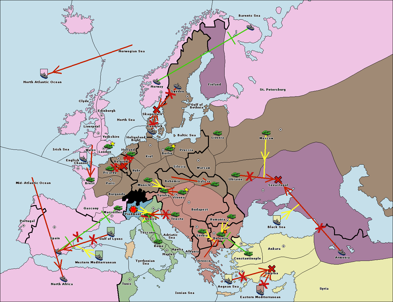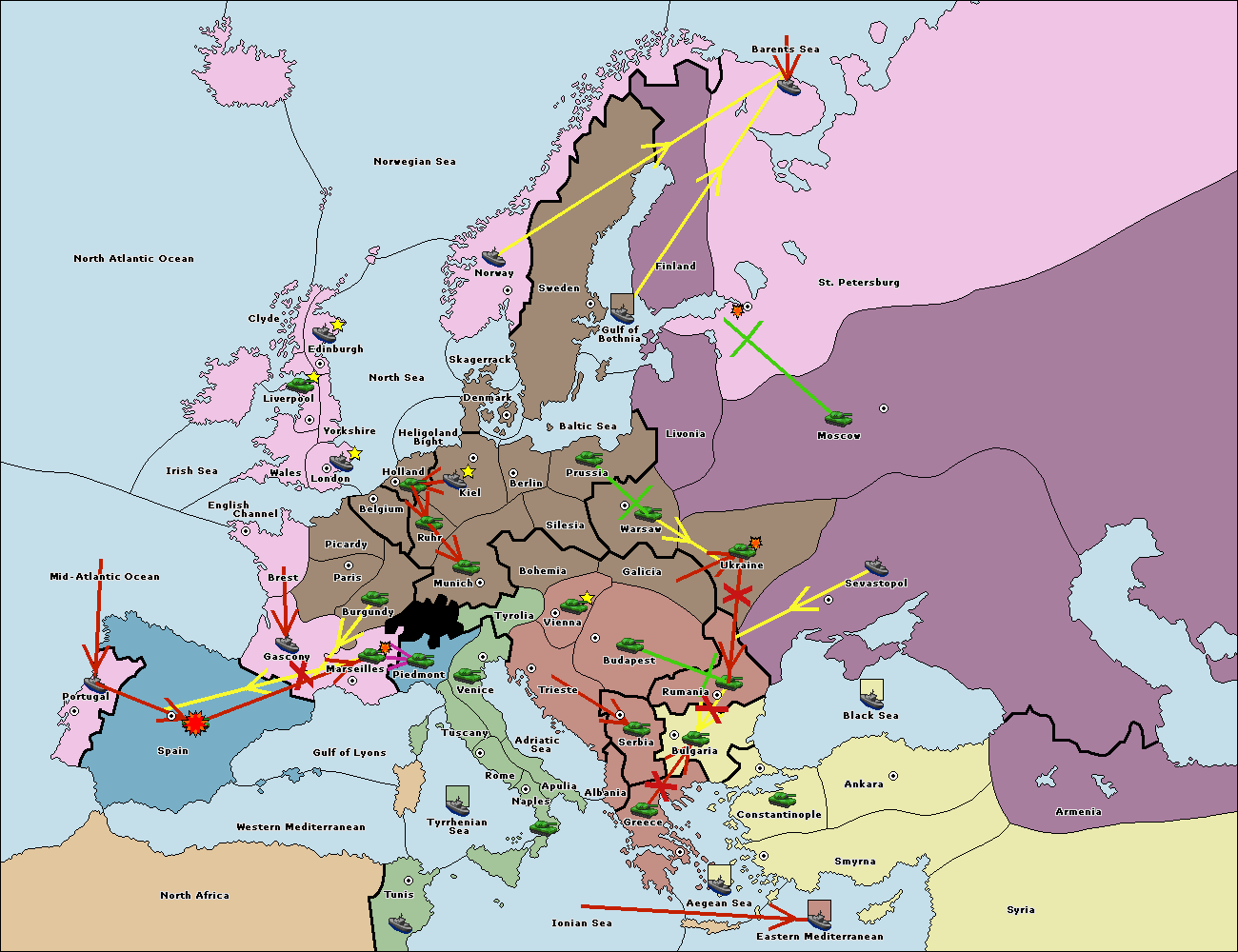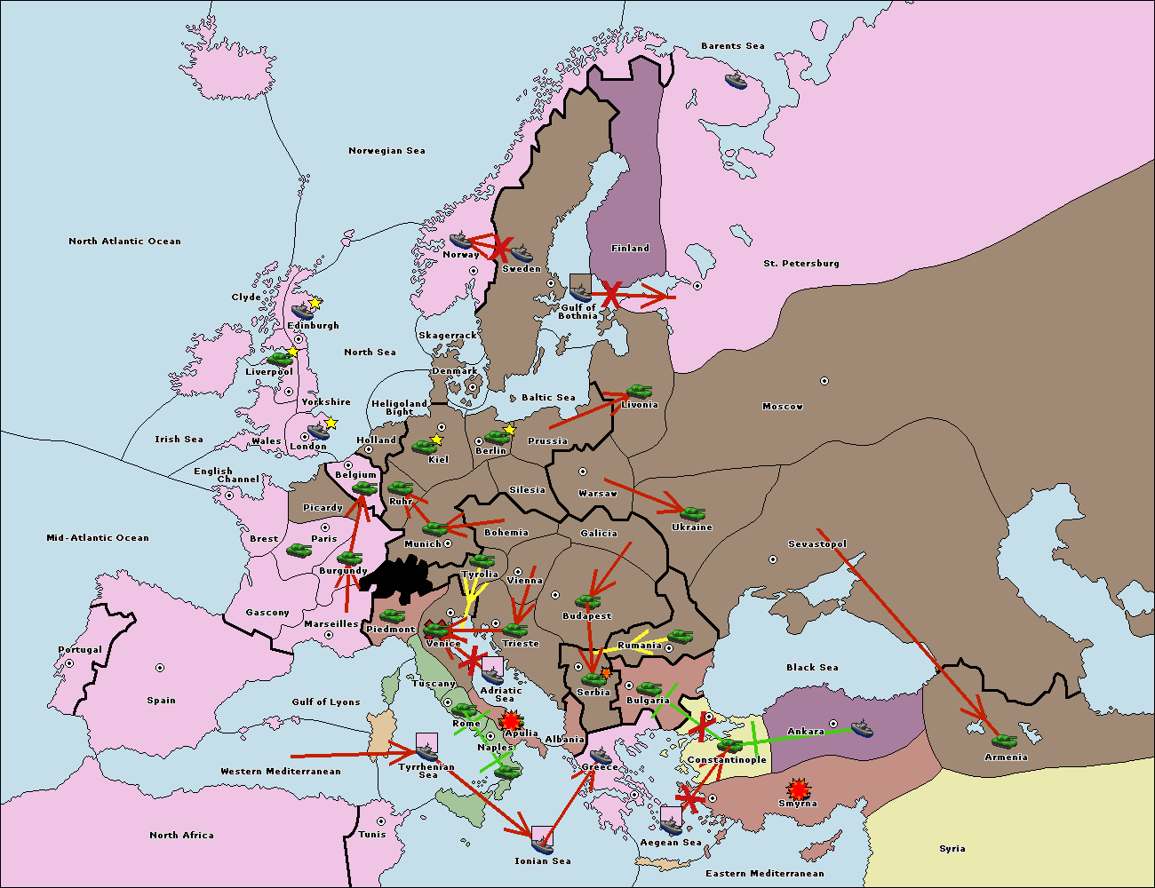 The fleet at Black Sea support move to Bulgaria from Constantinople.