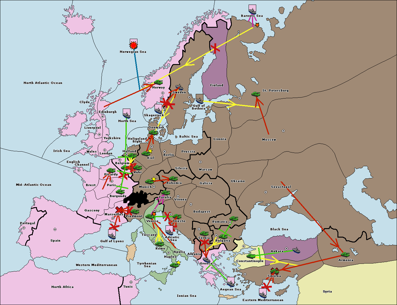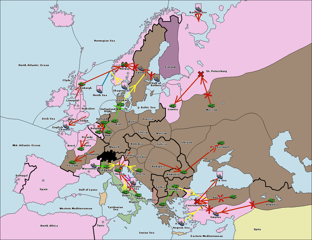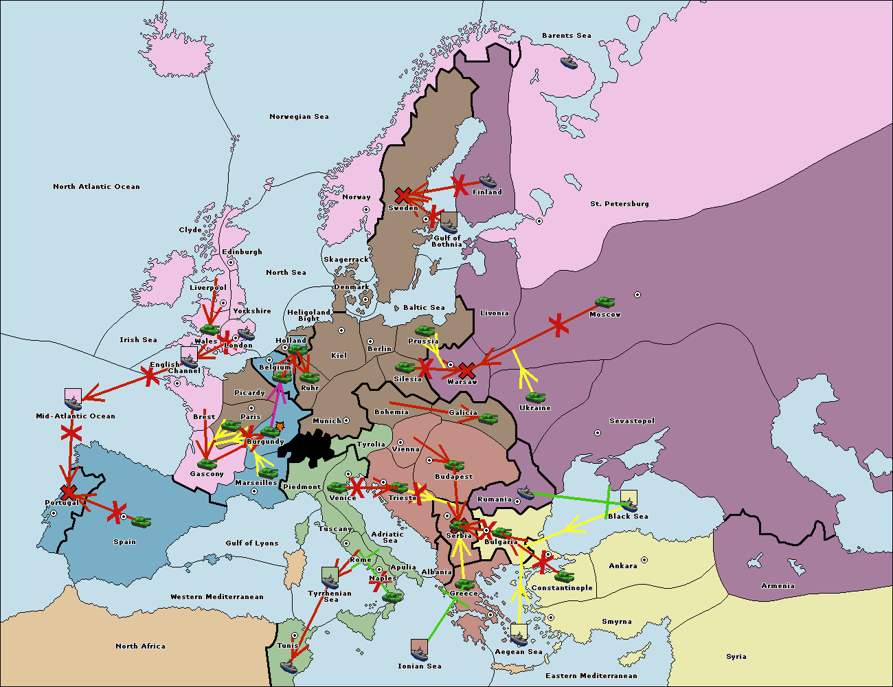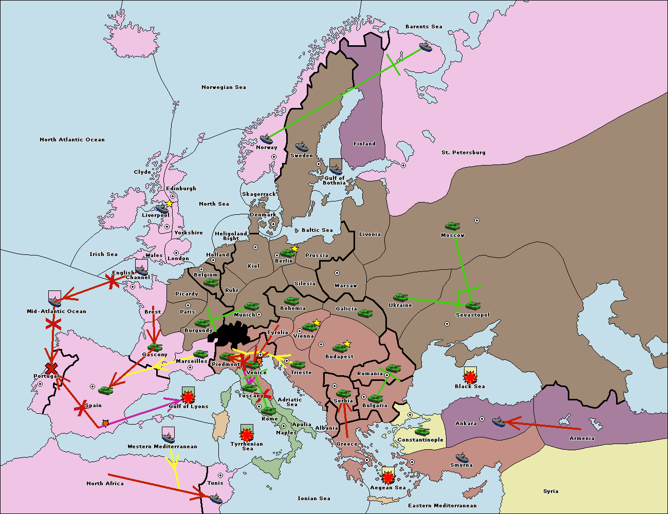 The fleet at Aegean Sea support hold to Bulgaria.