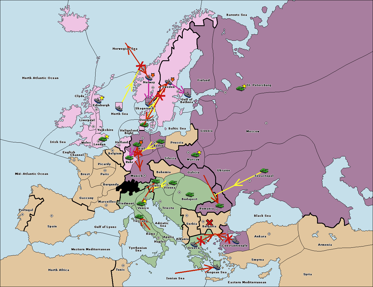 The fleet at Greece move to Bulgaria (South Coast).