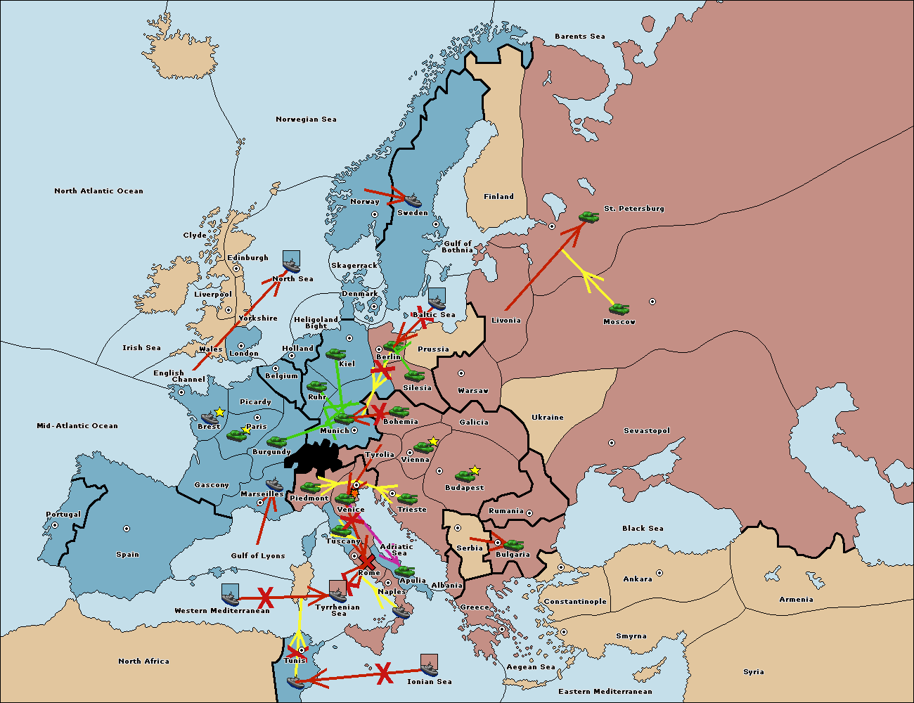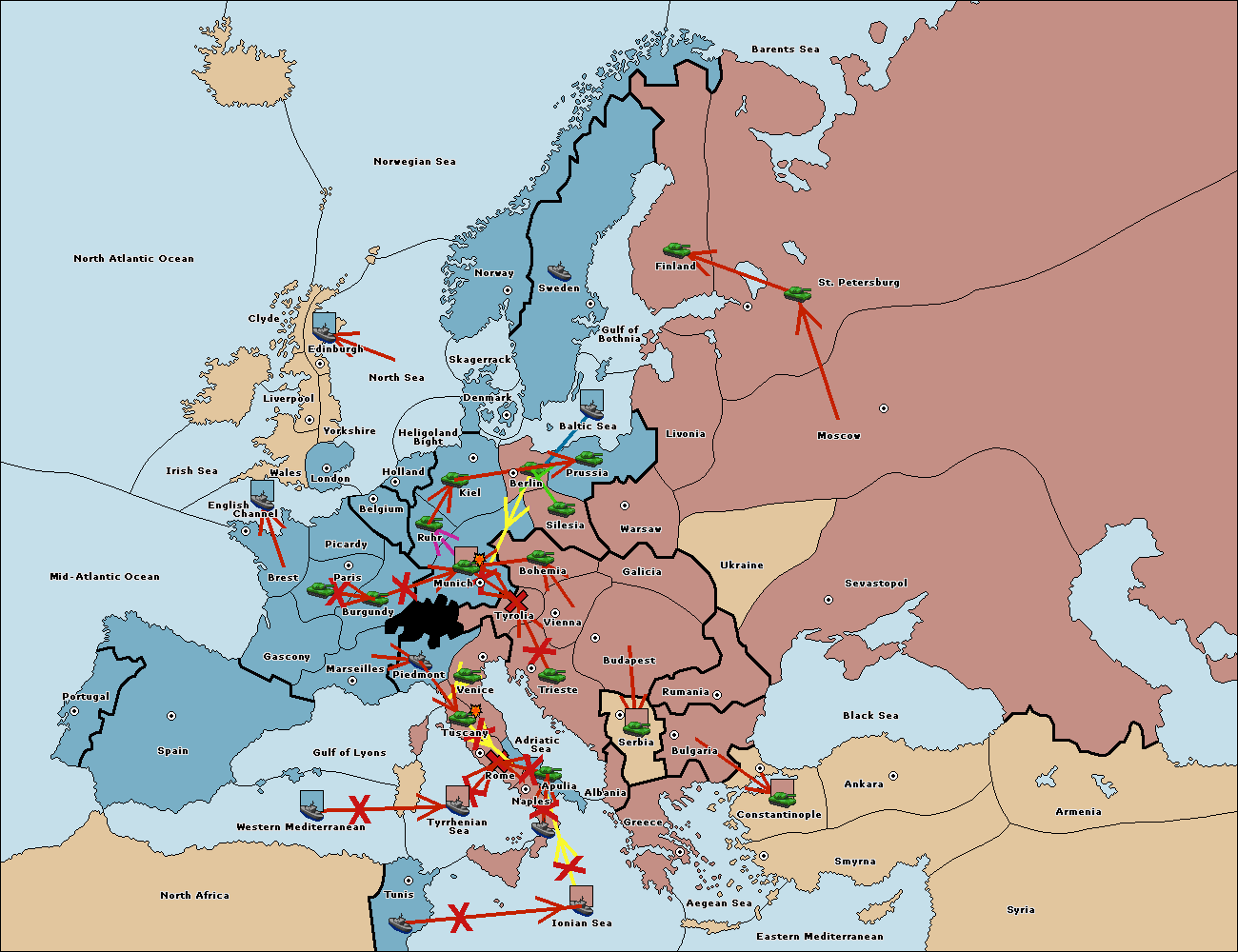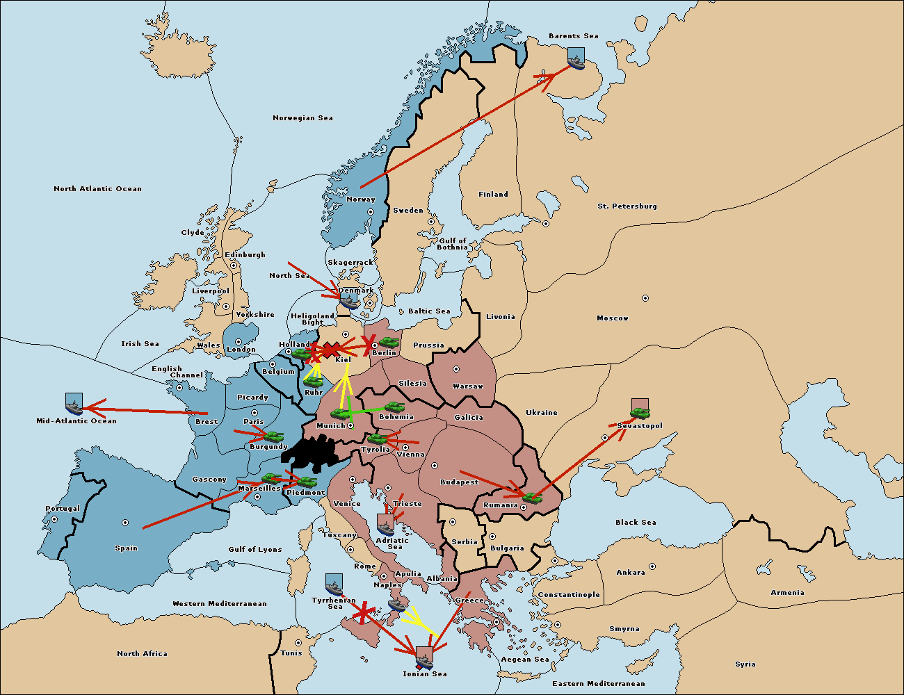 The fleet at Ionian Sea support move to Tunis from Tyrrhenian Sea.