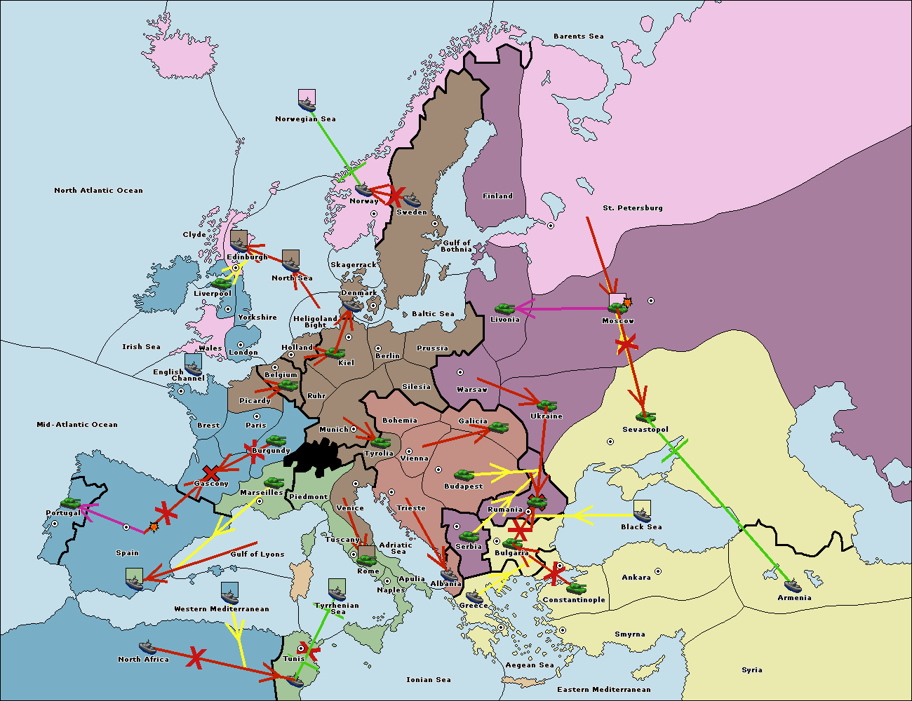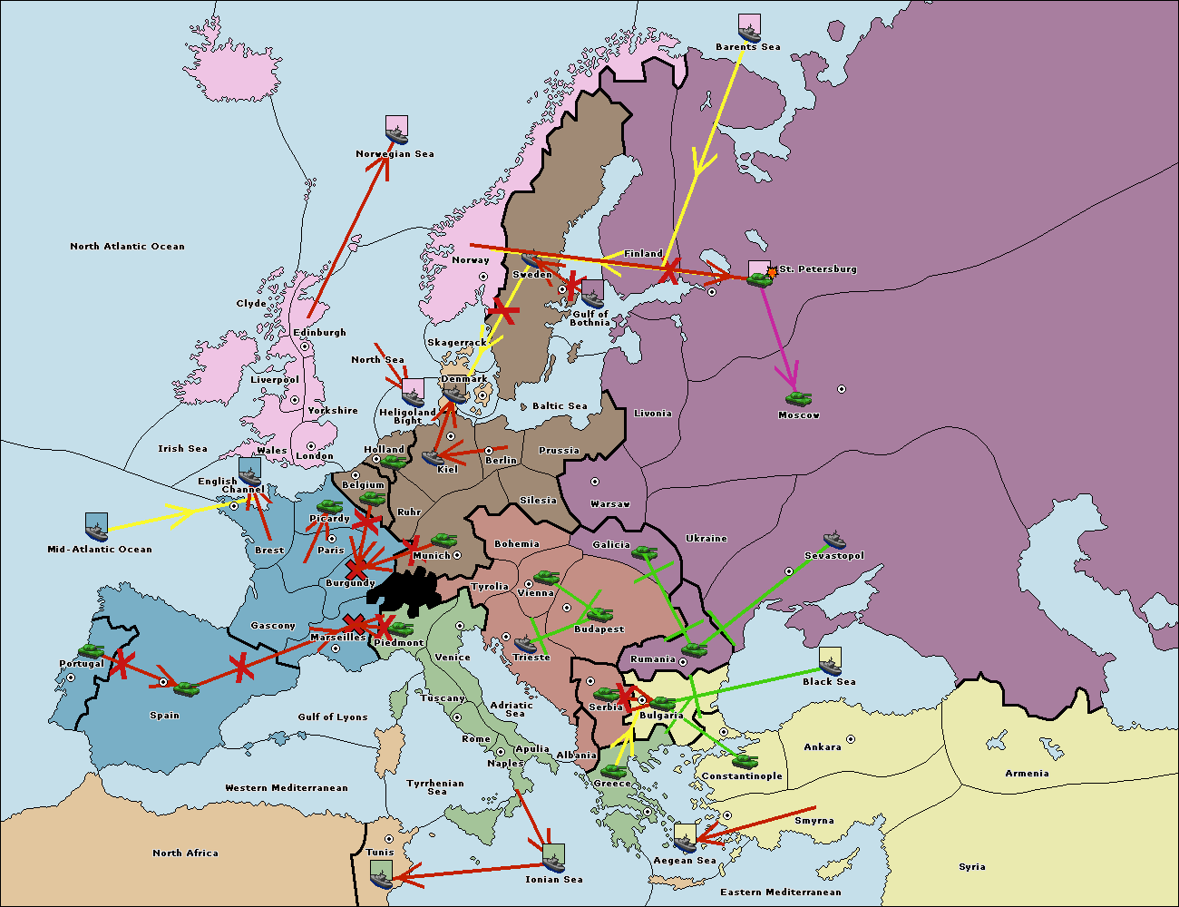 Очки за центры, Анонимная, С выбором страны, Скрытое голосование за ничью