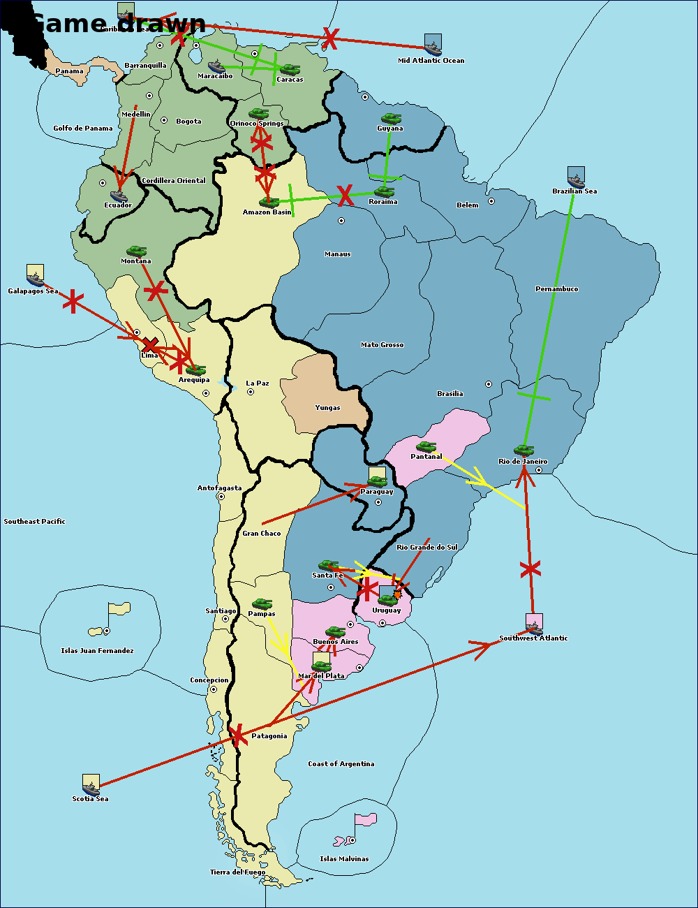 The army at Orinoco Springs move to Amazon Basin.