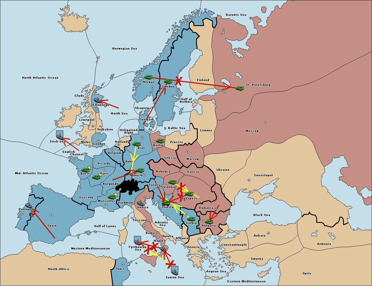 The fleet at Tyrrhenian Sea support move to Naples from Ionian Sea.