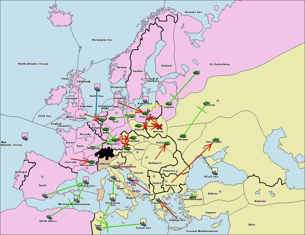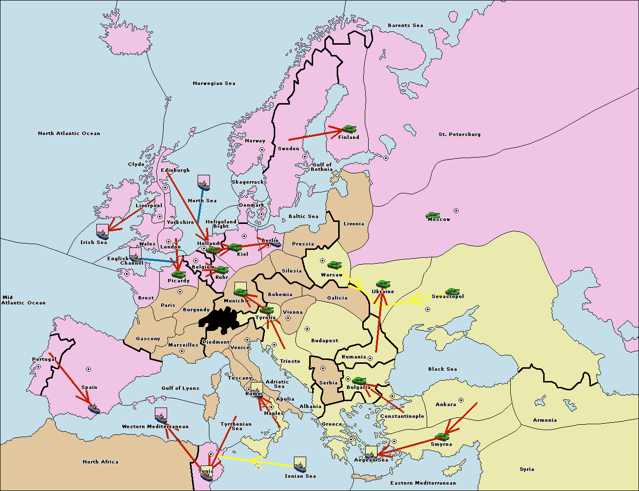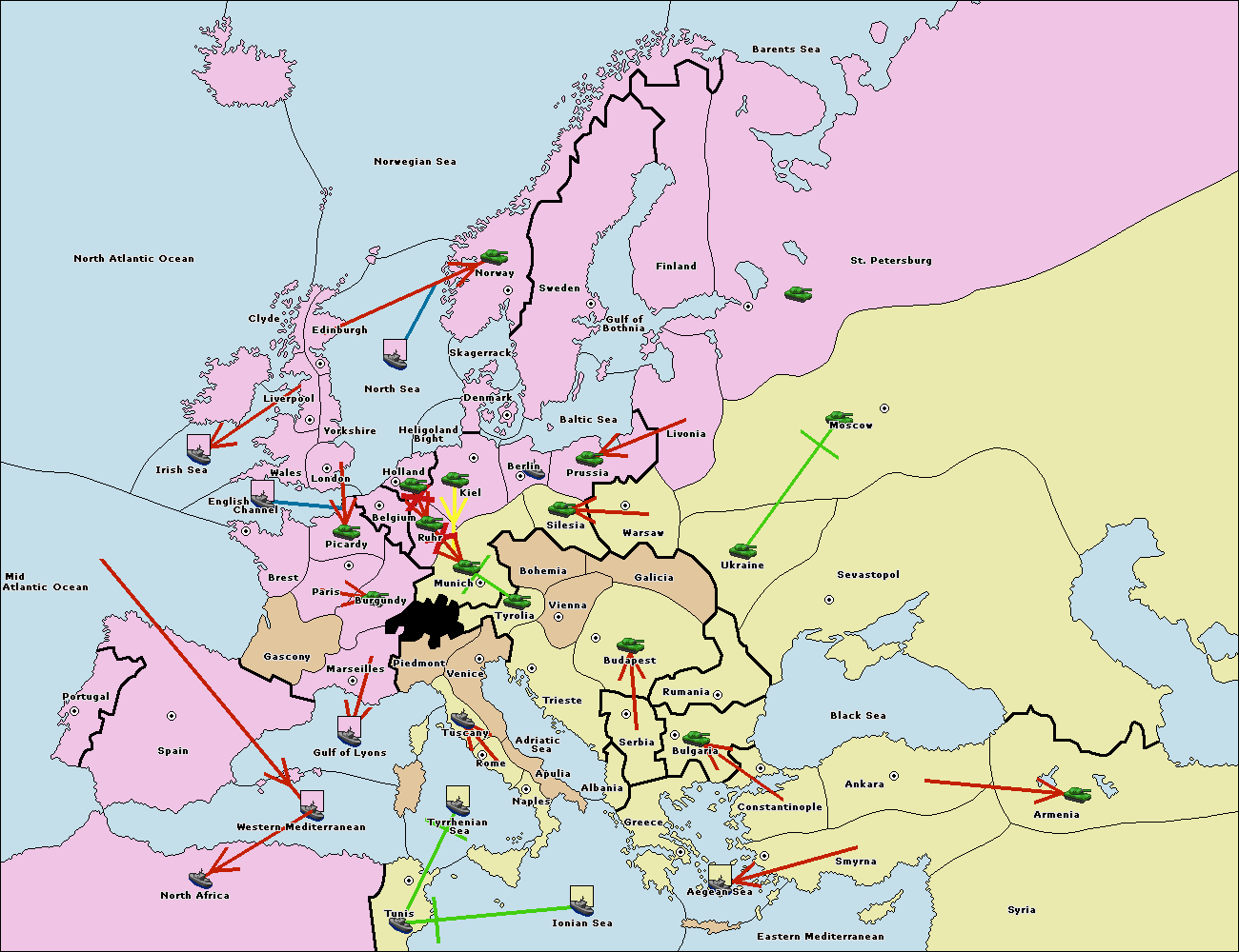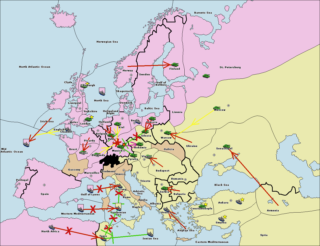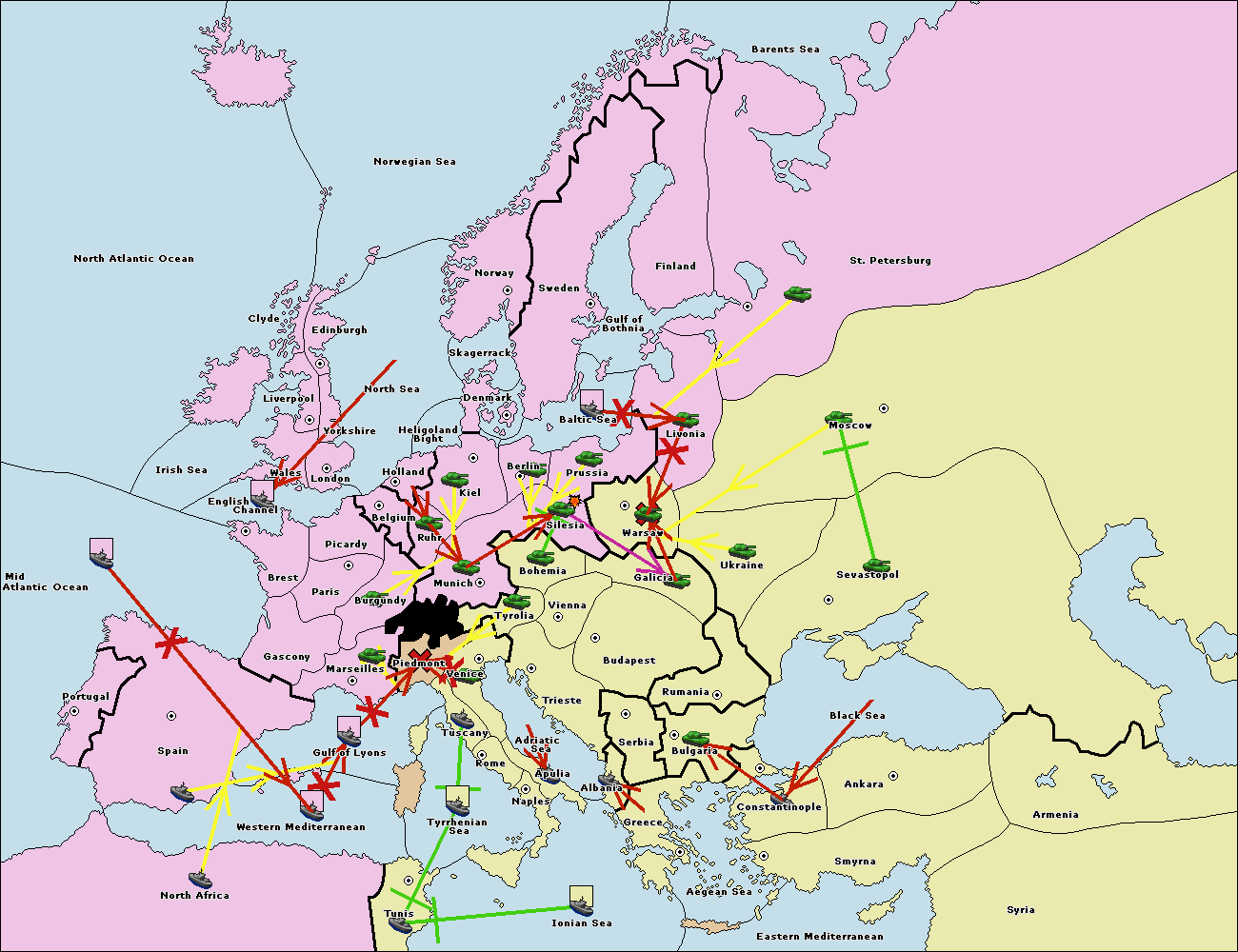The fleet at Spain (South Coast) support move to Gulf of Lyons from Western Mediterranean.